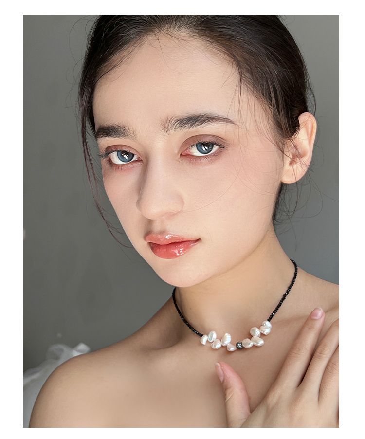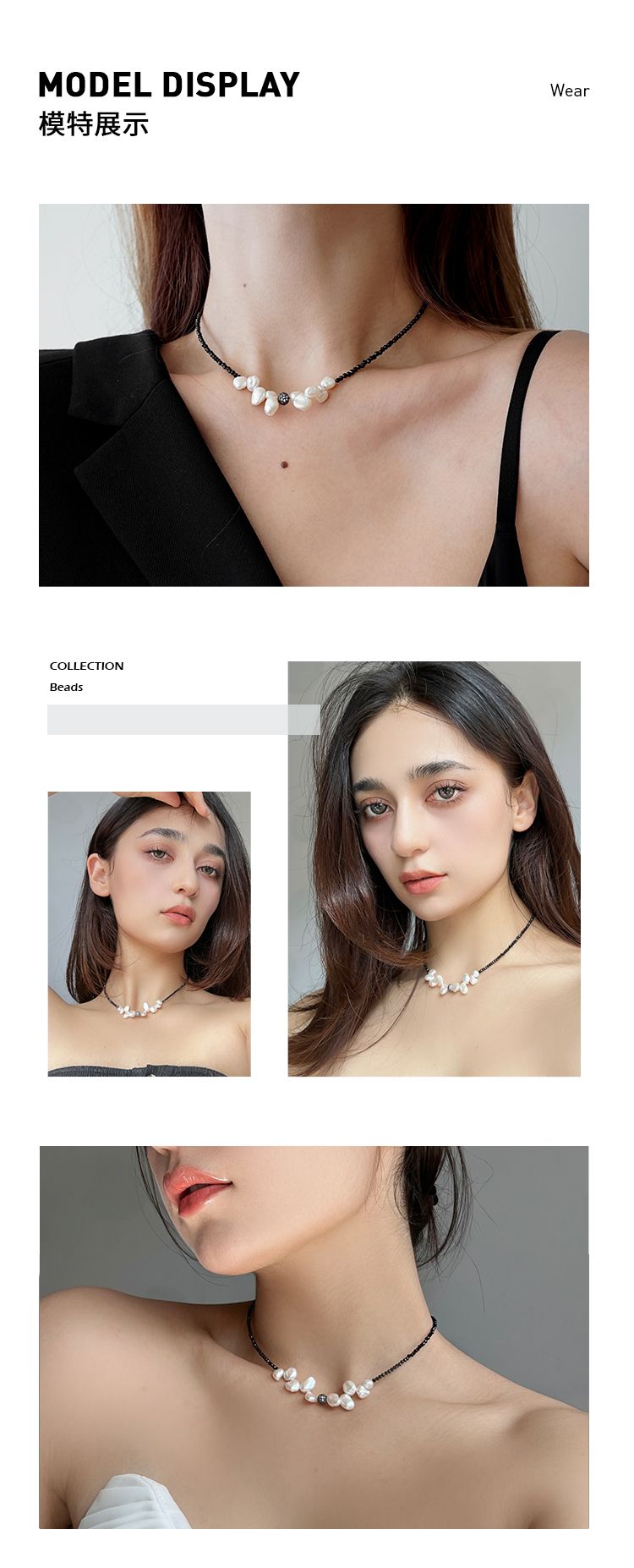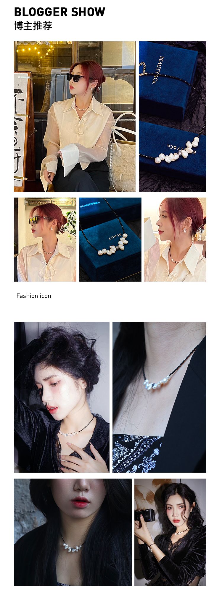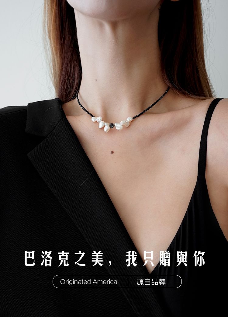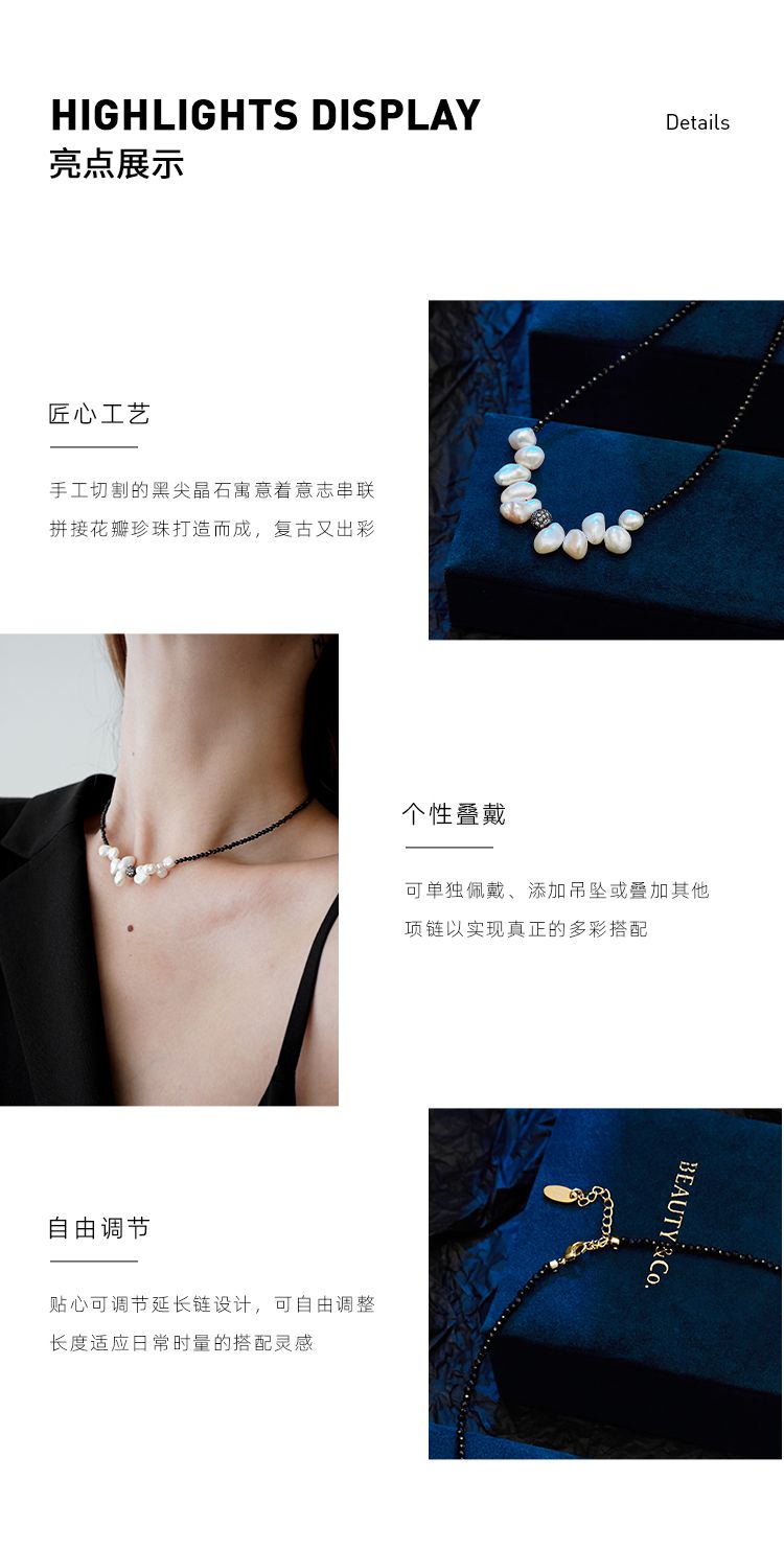 商品名称:安铂洛利花瓣巴洛克珍珠项链女轻奢设计黑尖石锁骨链小众气质颈链22022174