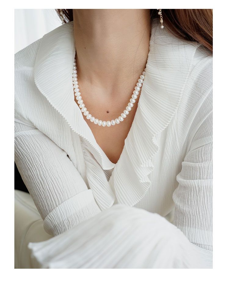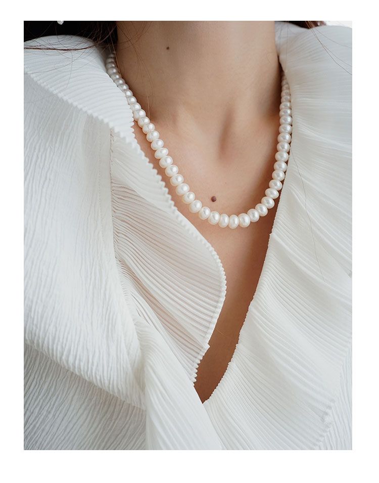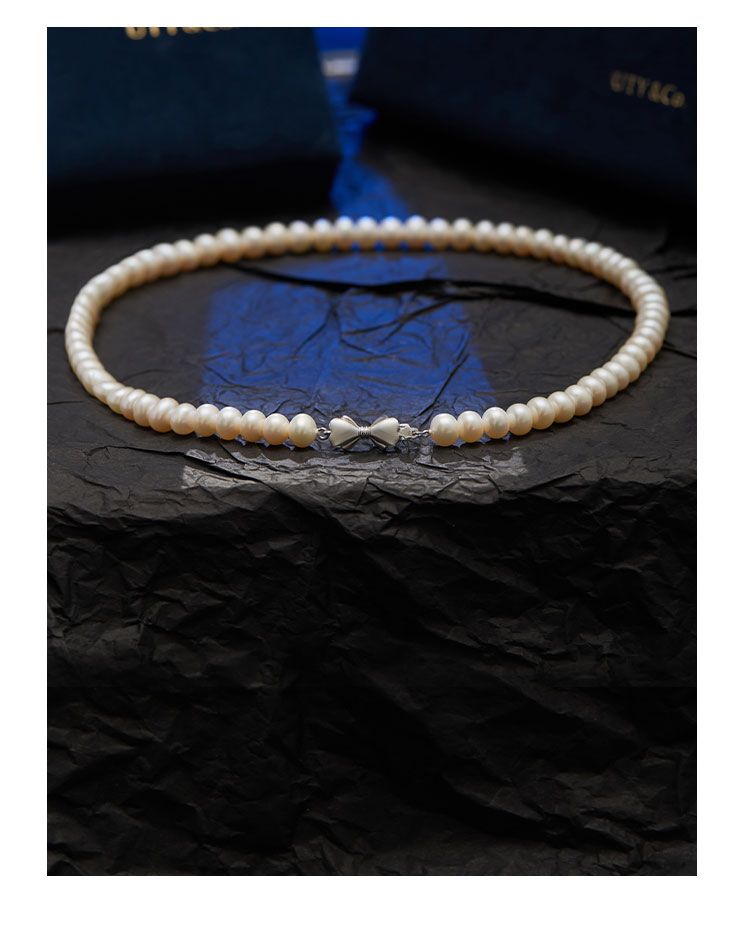AmberLollipop淡水珍珠项链女强光椭圆串珠颈链气质蝴蝶结锁骨链22022180
