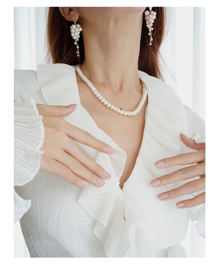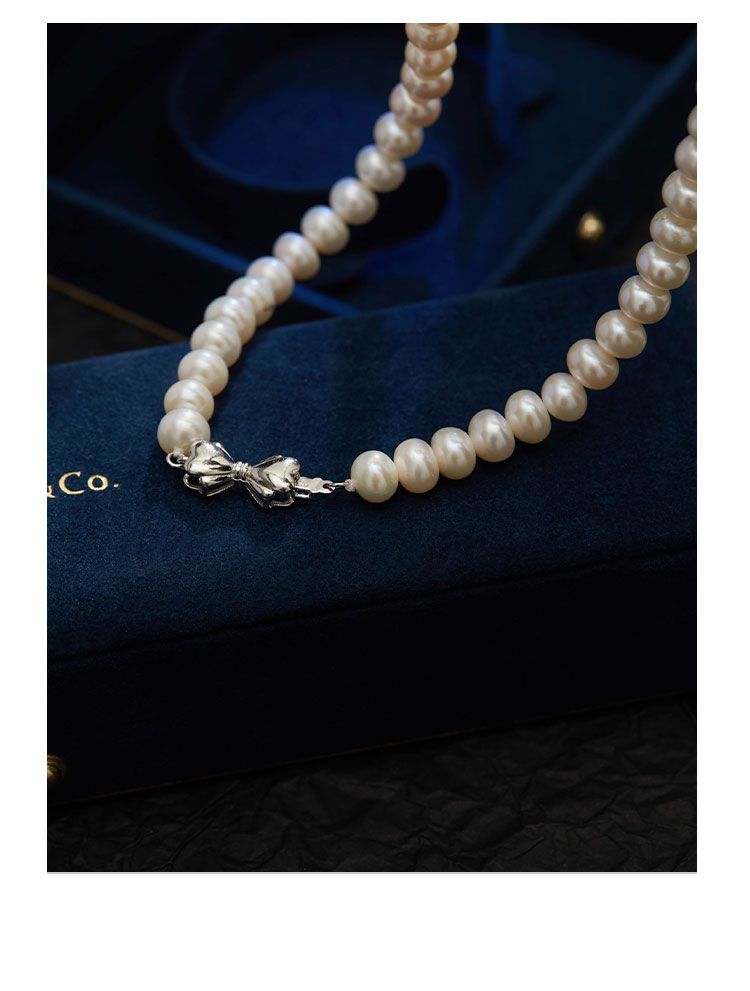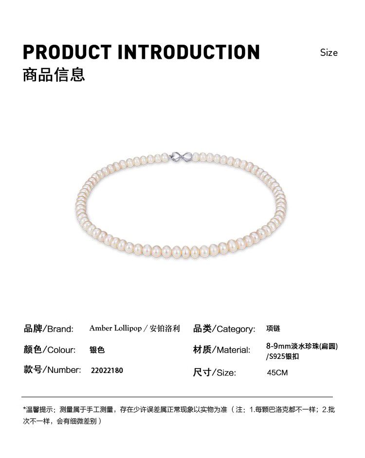 商品名称:AmberLollipop淡水珍珠项链女强光椭圆串珠颈链气质蝴蝶结锁骨链22022180