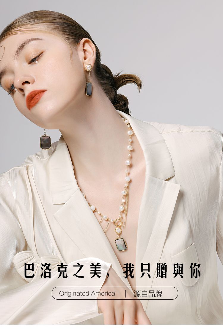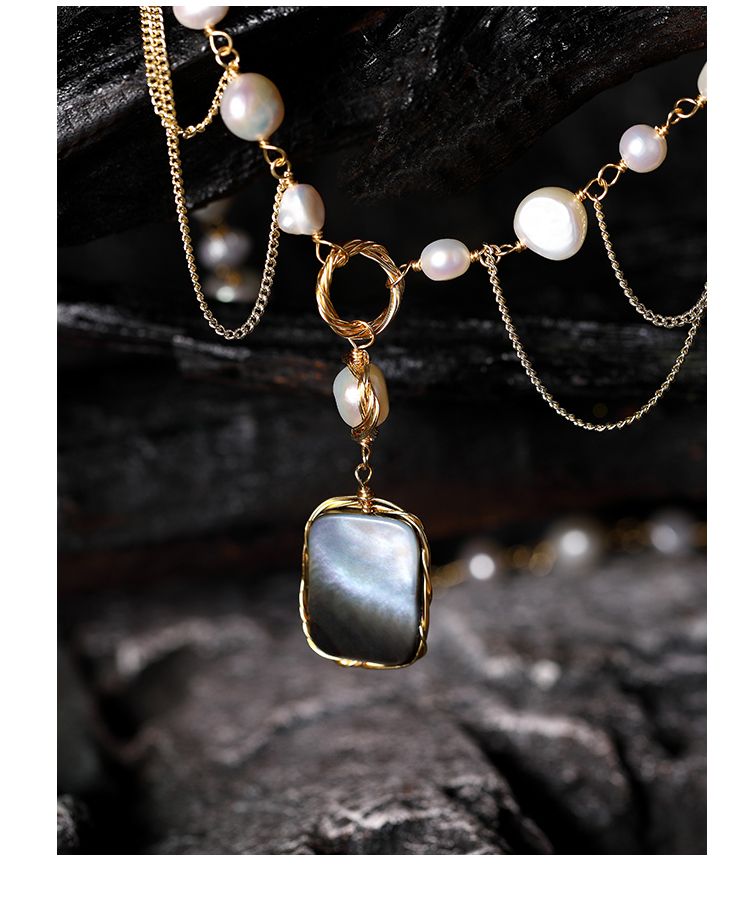 商品名称:安铂洛利 珍珠项链女轻奢高级感叠戴流苏小众颈链彩贝锁骨链秋冬210817175