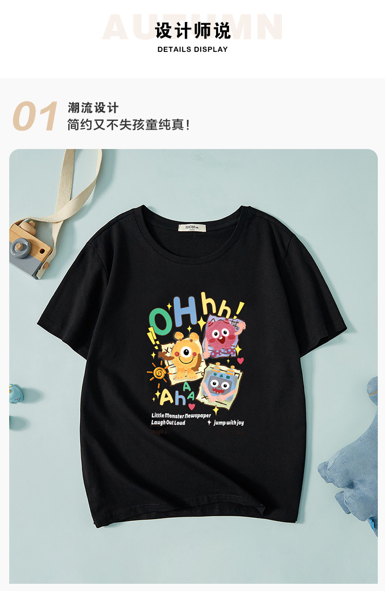 商品名称:【纯棉吸汗】儿童T恤春秋时尚男童女童短袖衫中大童短袖T恤上衣 518415