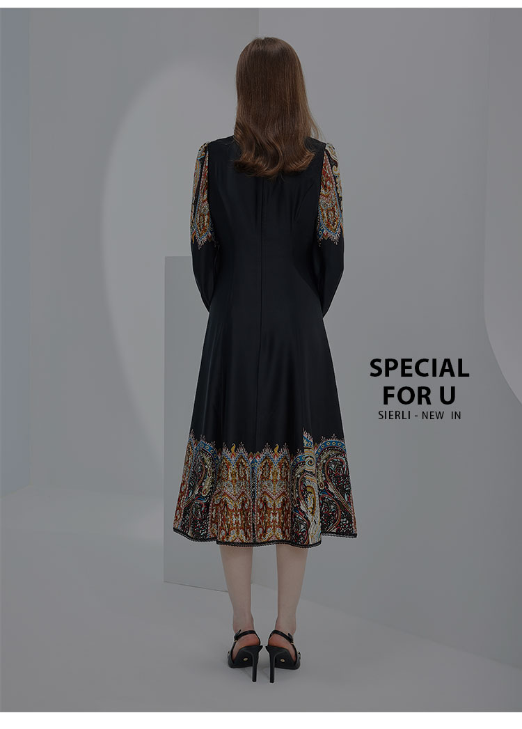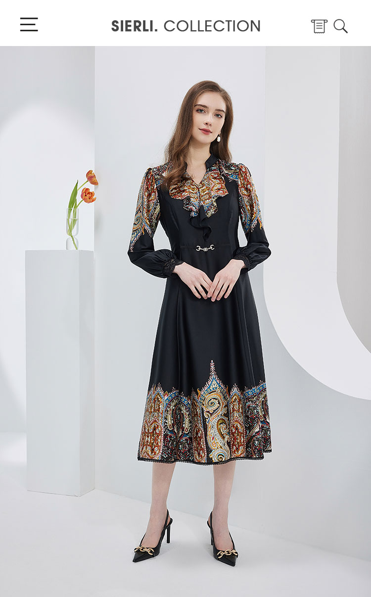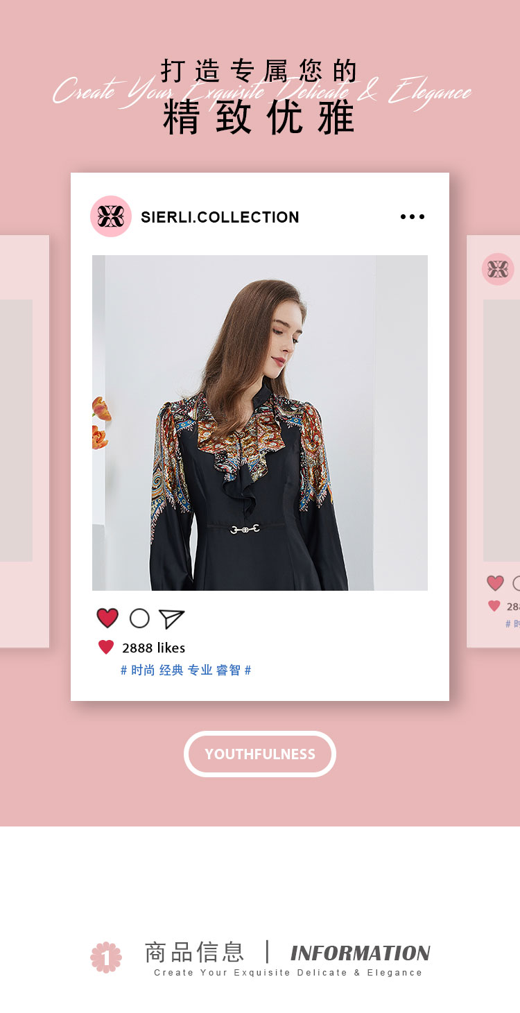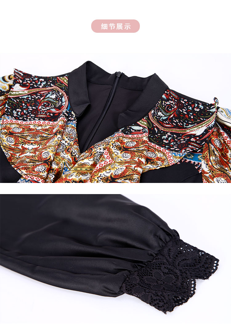 商品名称:春夏波西米亚风定位花收腰大摆长裙荷叶领浪漫感连衣裙 519135
