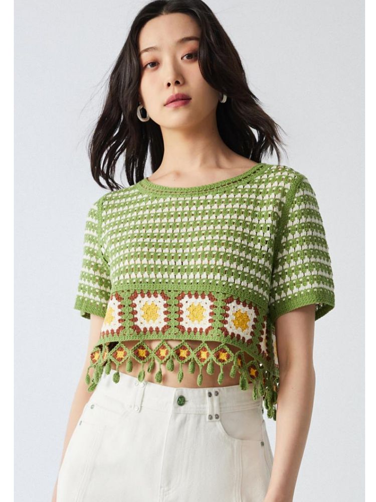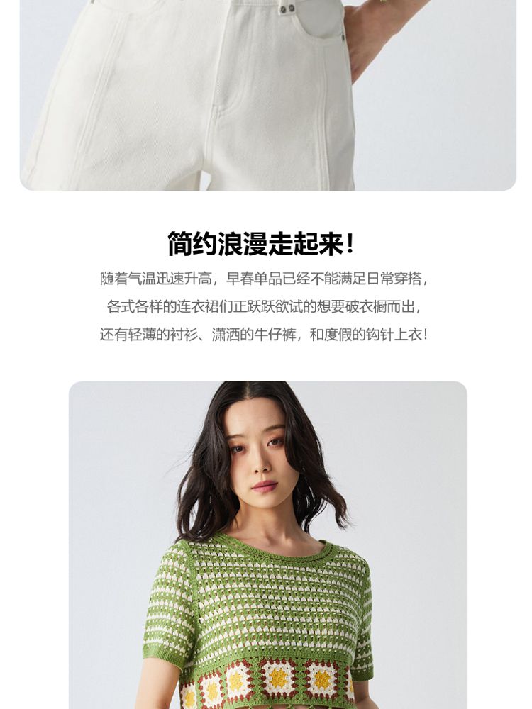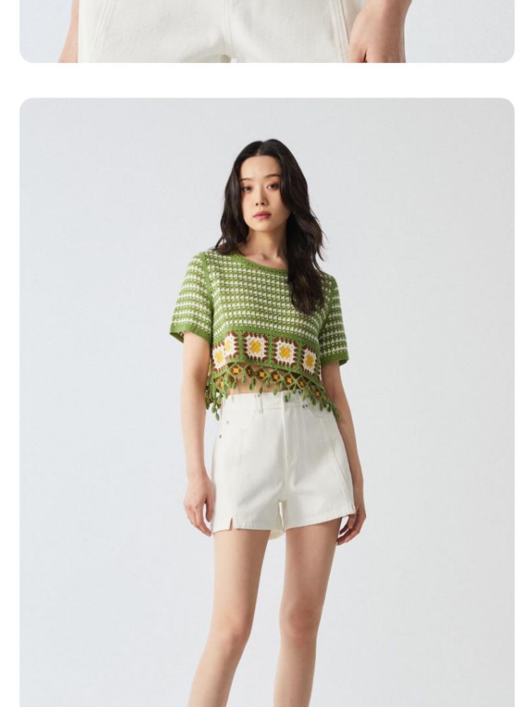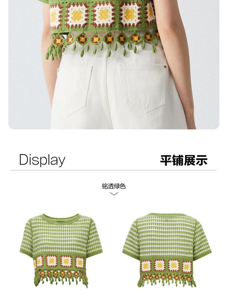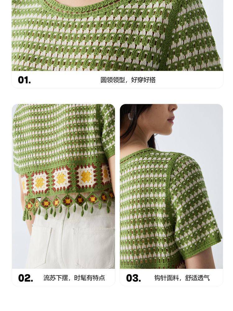 商品名称:【针织镂空花朵】25夏季圆领短袖镂空花朵针织上衣 033233