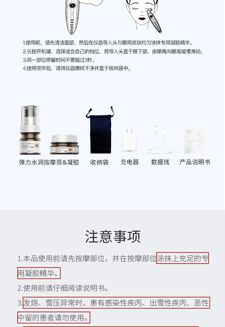 商品名称:MARASIL玛瑞莎 射频眼部美容仪电眼刀EMS微电流美眼仪温感家用导入仪按摩眼袋去眼圈美容器