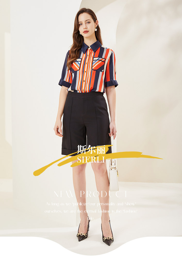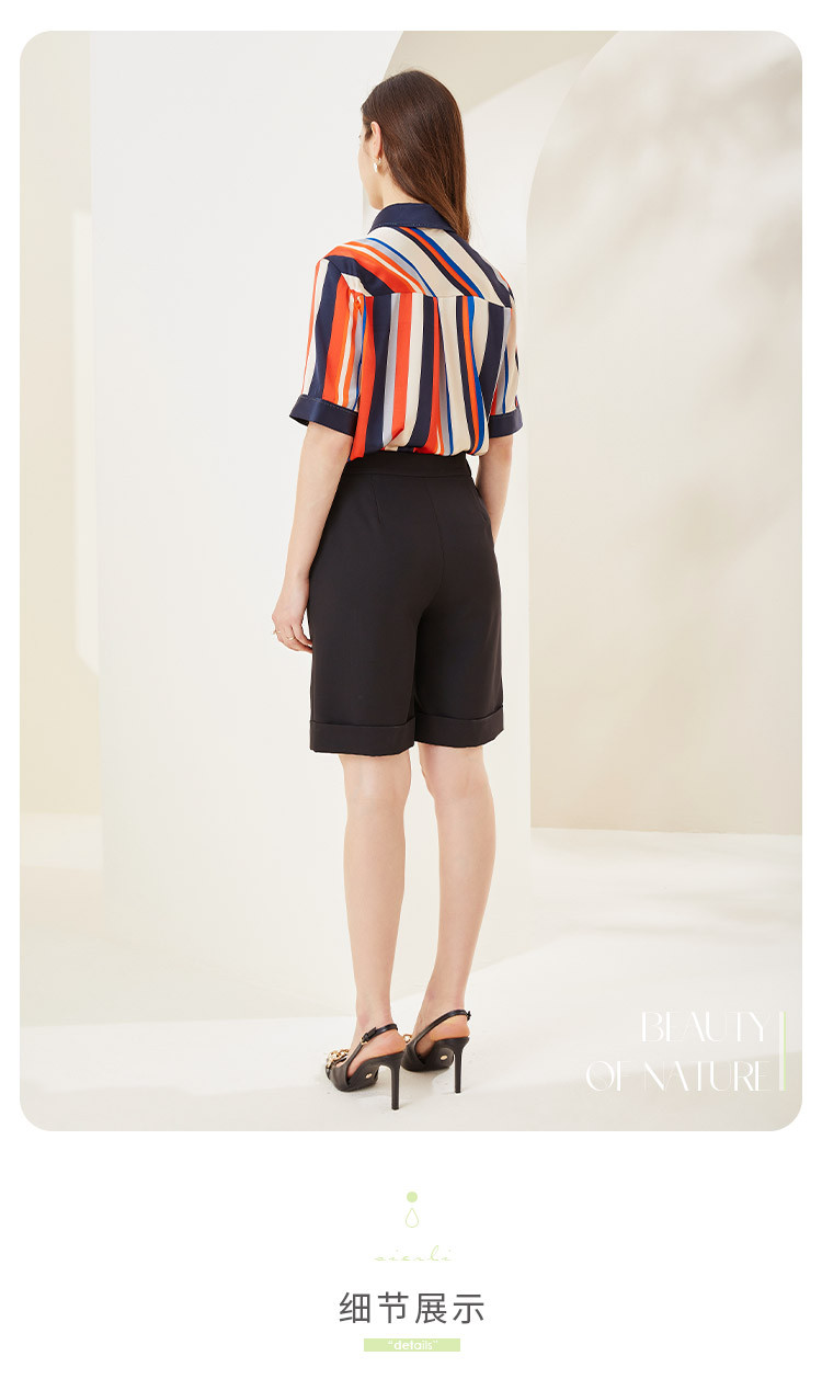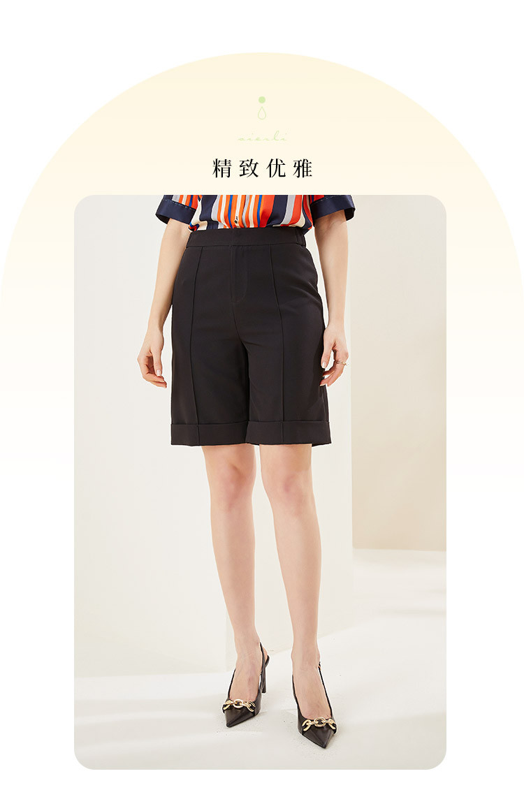 夏季时尚干练OL气质休闲翻边五分裤通勤女式休闲裤 867871