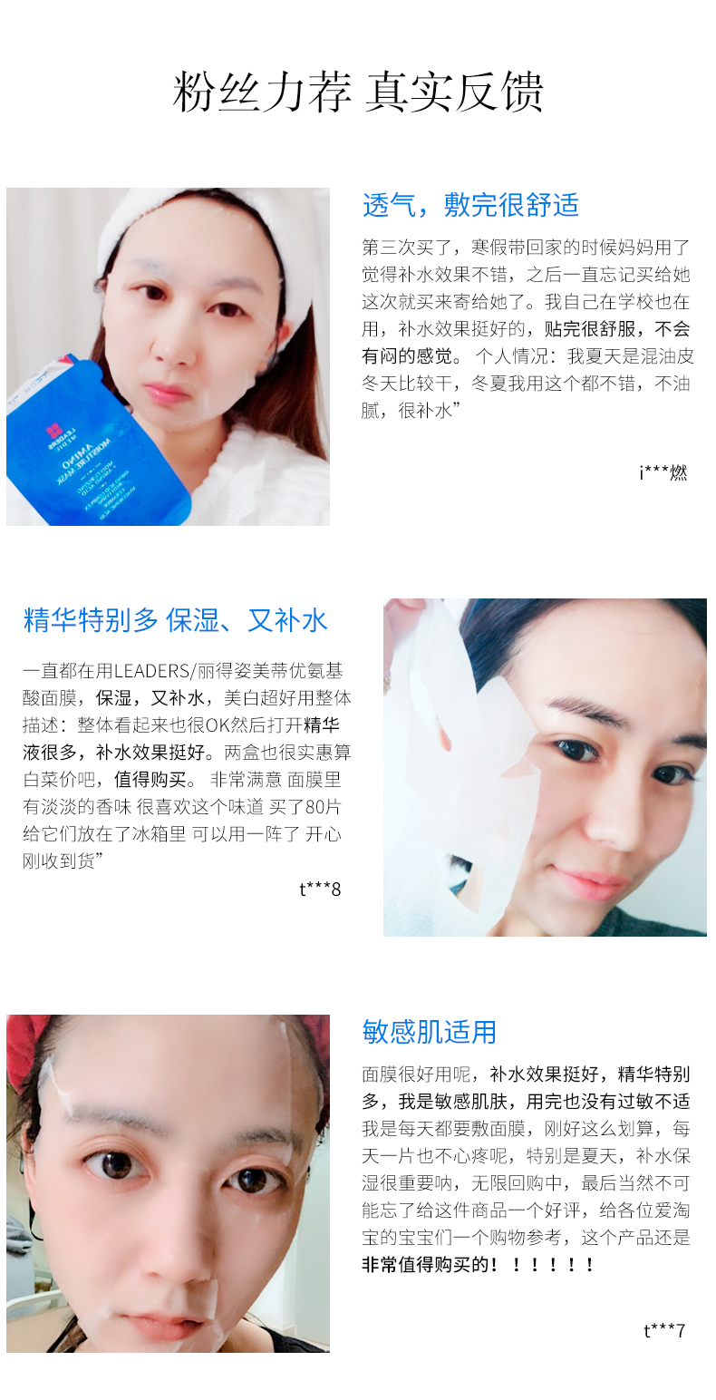 商品名称:LEADERS丽得姿 美帝优补水面膜 25毫升/片 10片/盒
