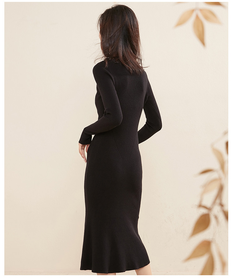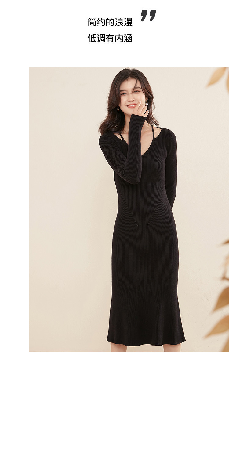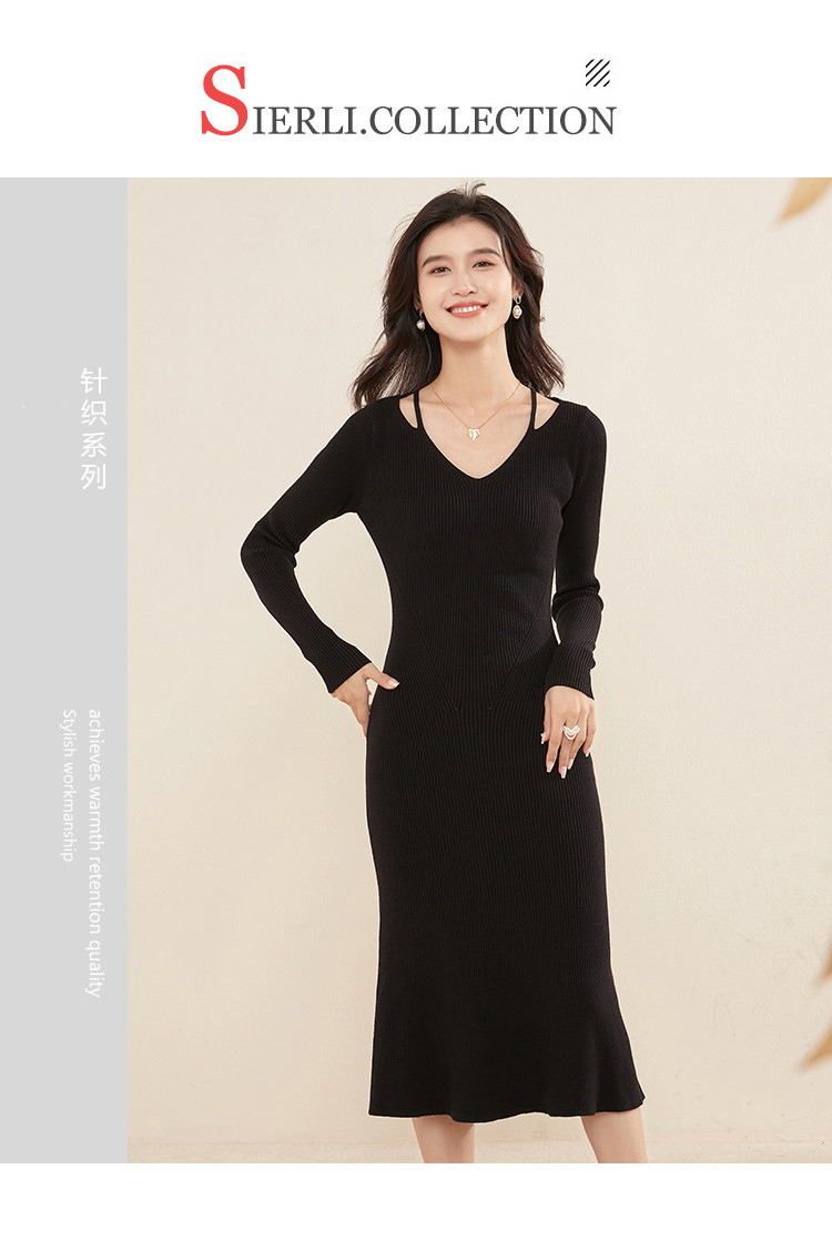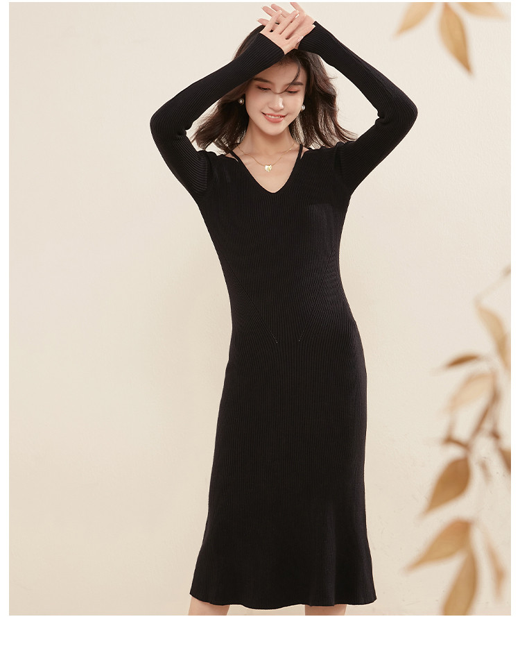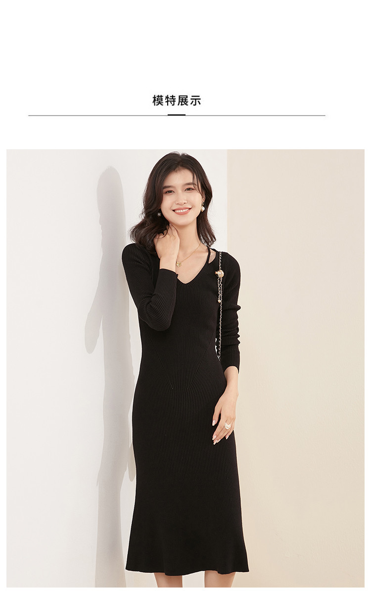商品名称:【配大衣】法式连衣裙修身气质V领打底毛衣裙女秋冬 331231