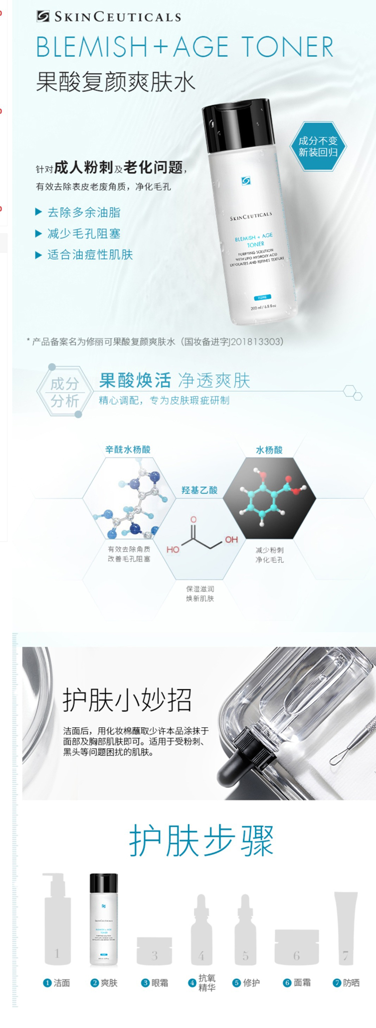 商品名称:SkinCeuticals/修丽可 果酸复颜爽肤水 200ml