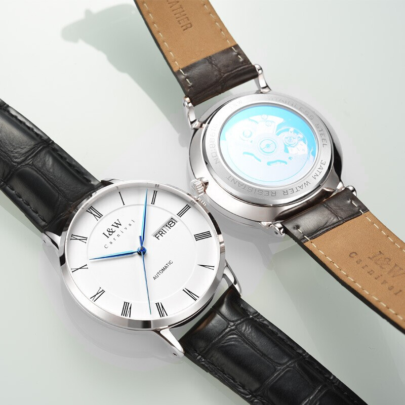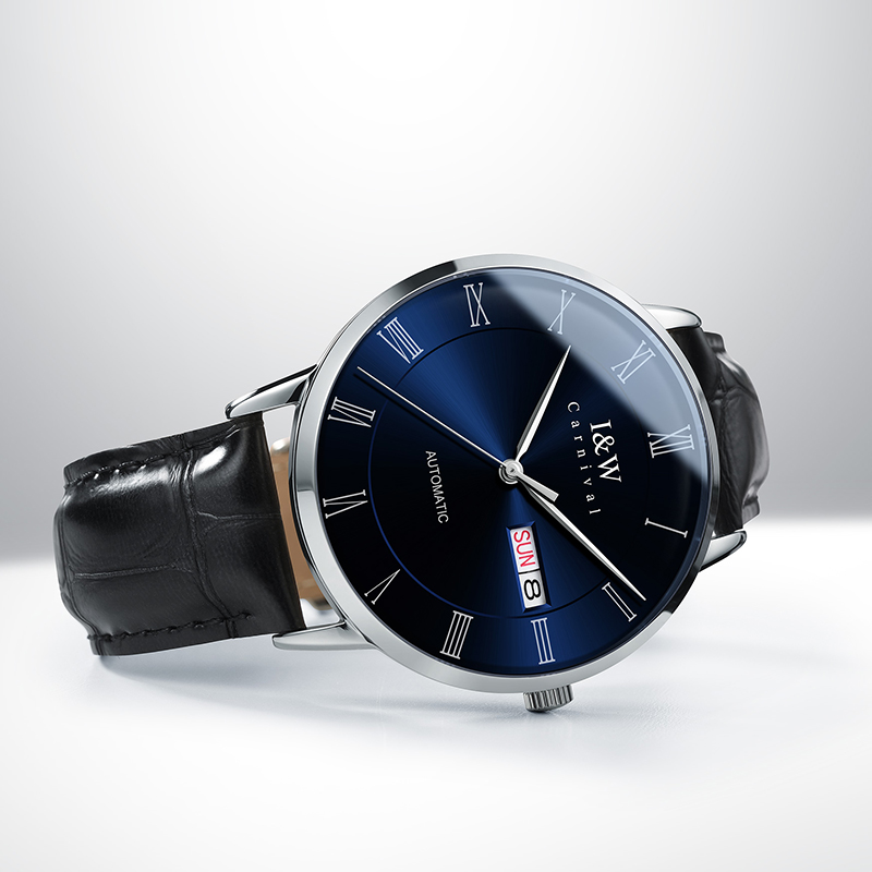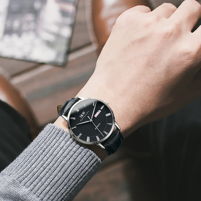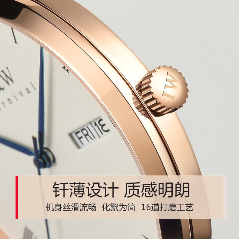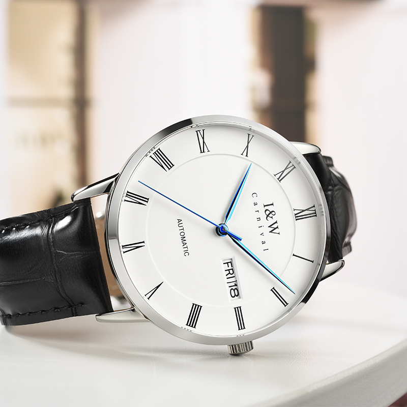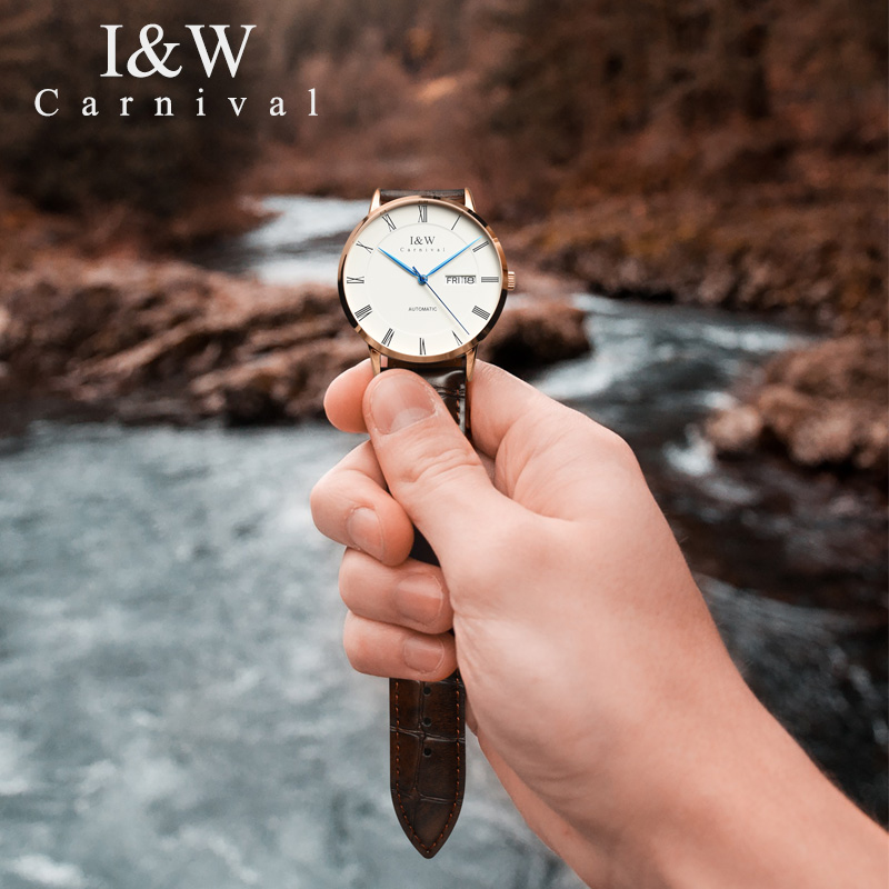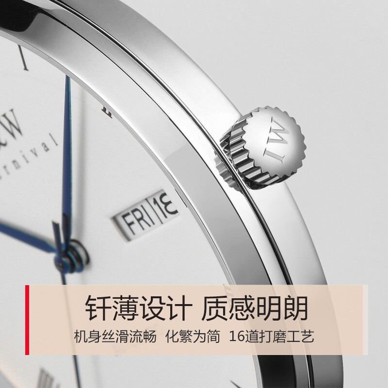 商品名称:I&W手表男士机械表全自动超薄进口机芯时尚简约商务罗马蓝宝石玻璃防水腕表 玫瑰金深蓝面 多色可选