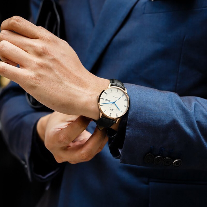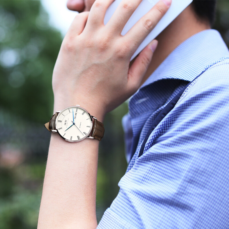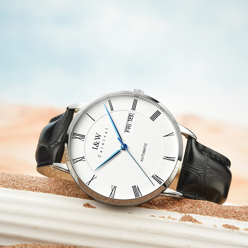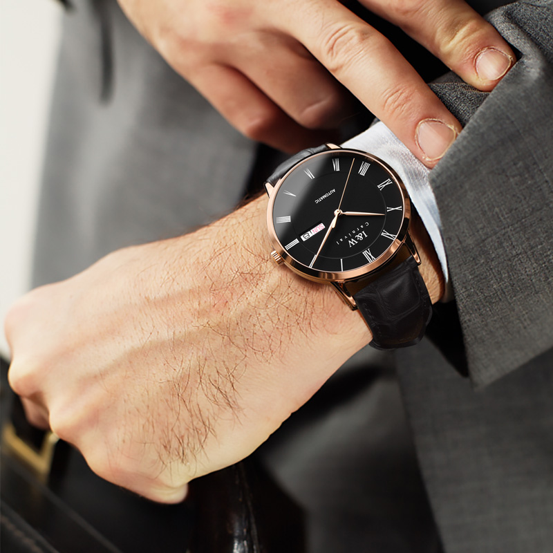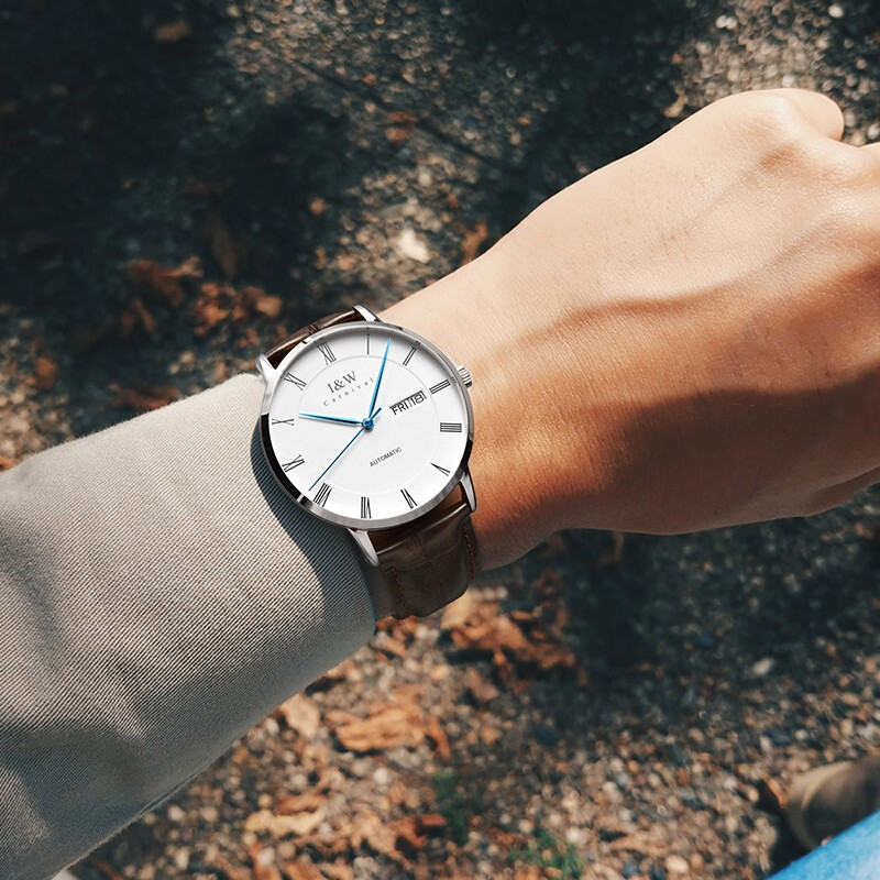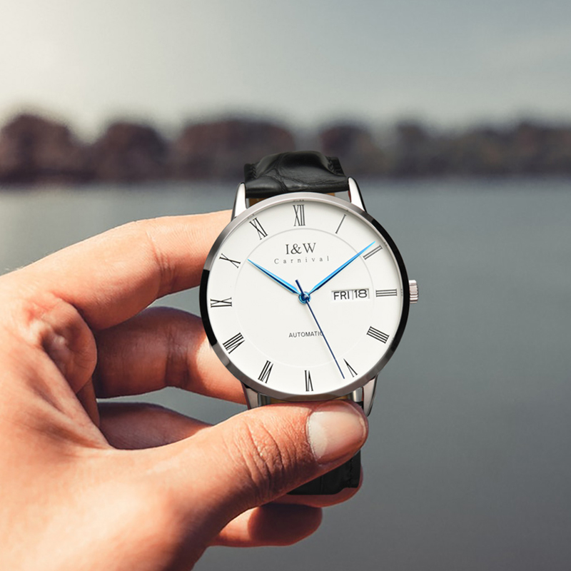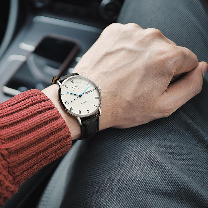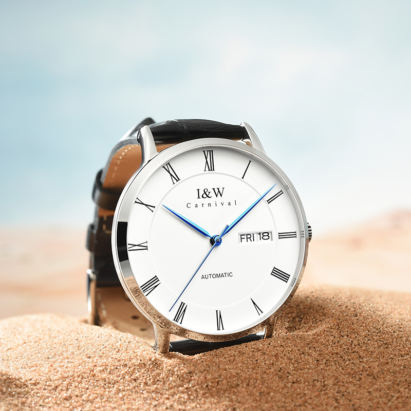 商品名称:I&W手表男士机械表全自动超薄进口机芯时尚简约商务罗马蓝宝石玻璃防水腕表 玫瑰金深蓝面 多色可选