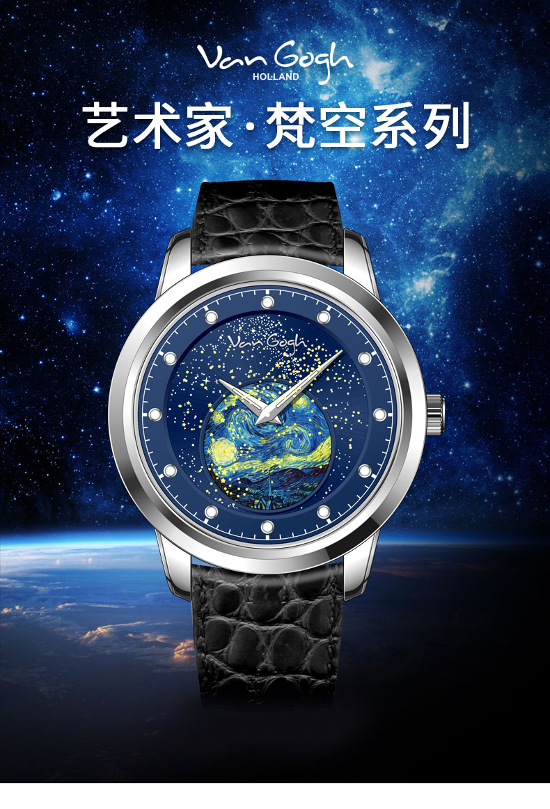 商品名称:梵高典藏系列 男士手表小众轻奢时尚防水腕表简约艺术学生情侣 闪烁星空