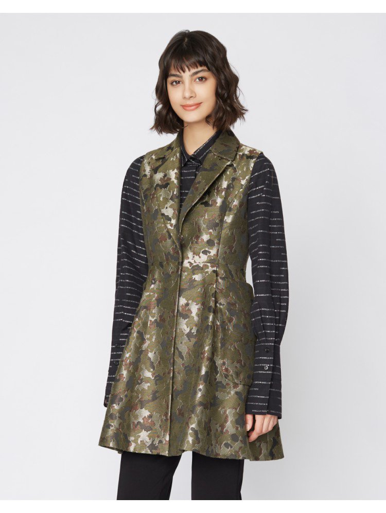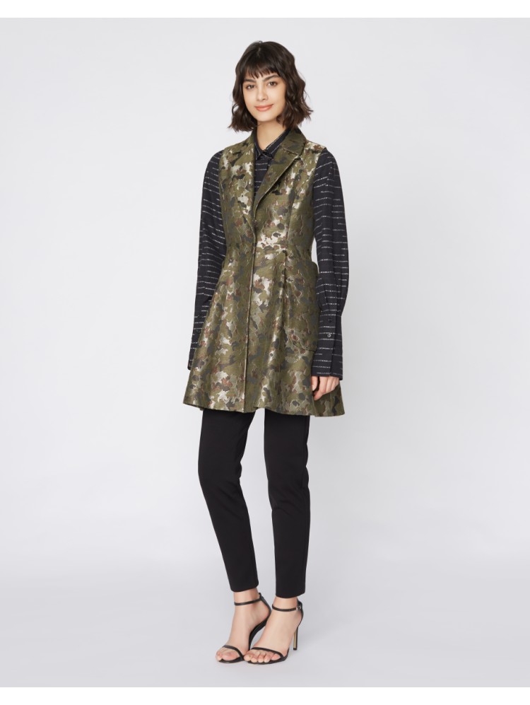 商品名称:宝姿女装潮流个性通勤休闲日常无袖撞色拼接中长风衣 524170