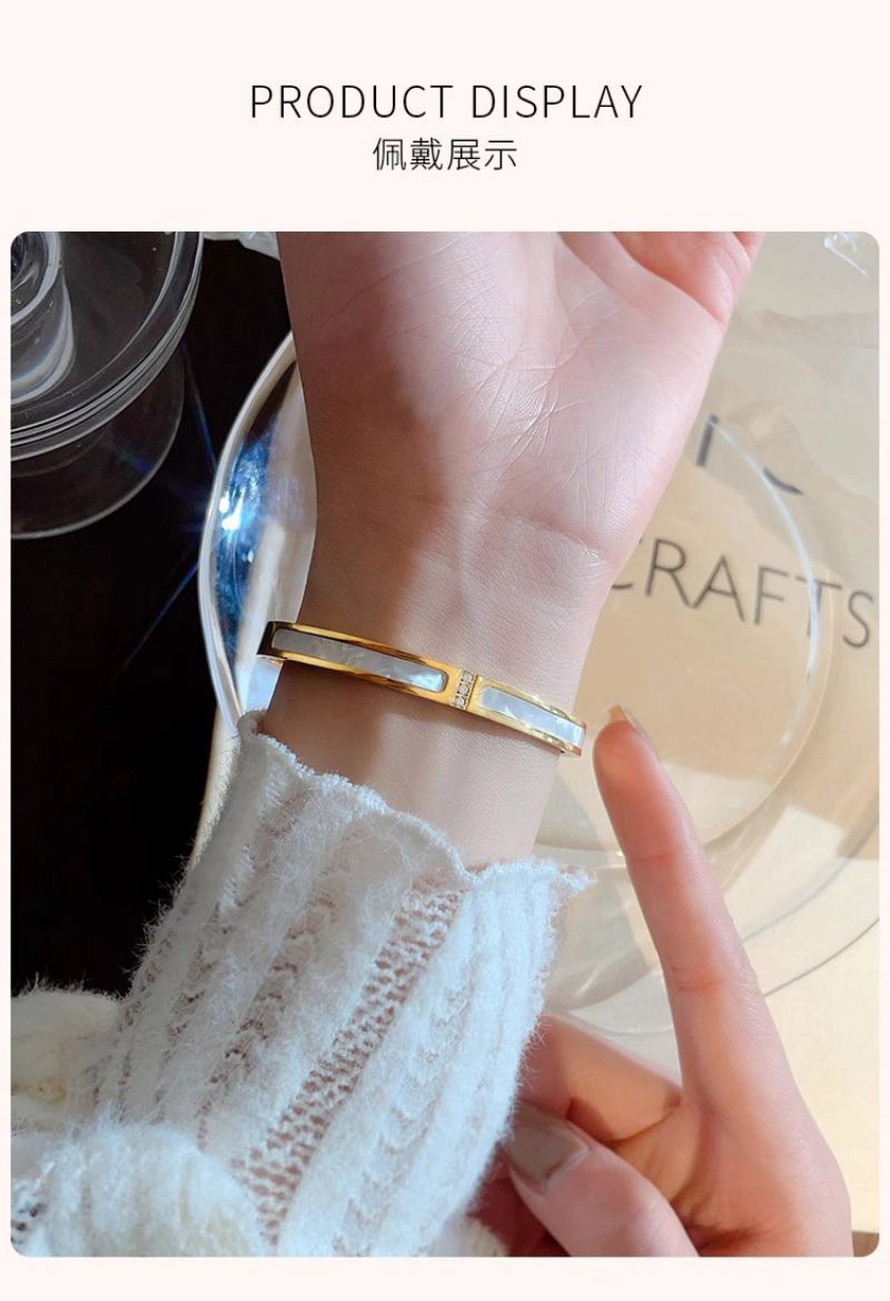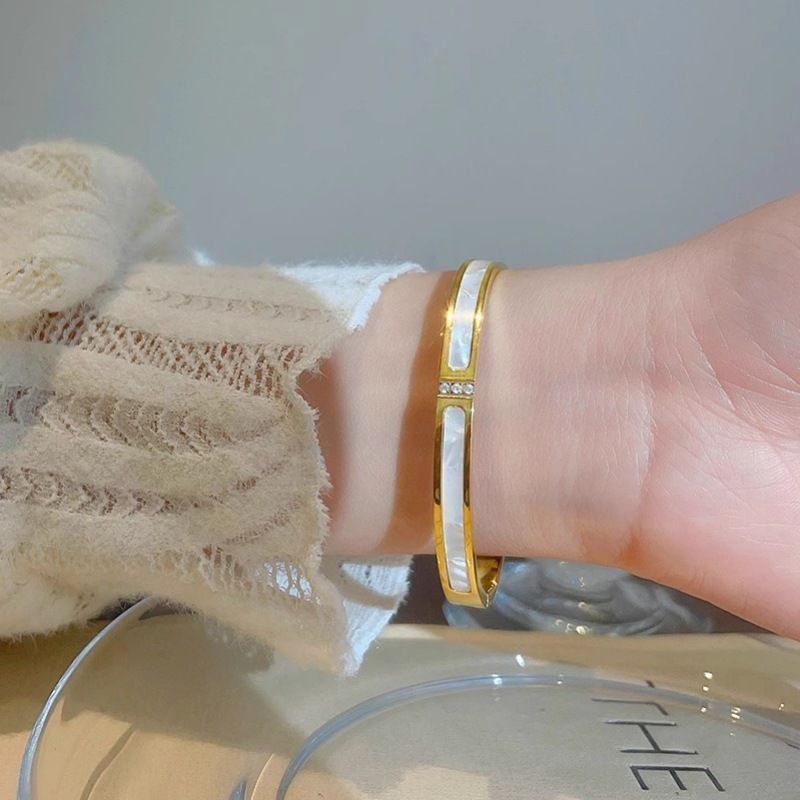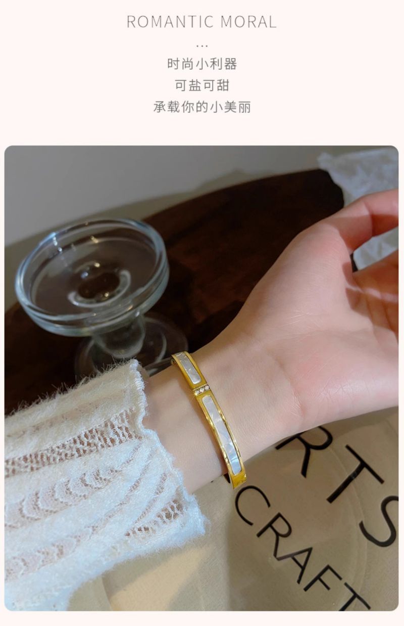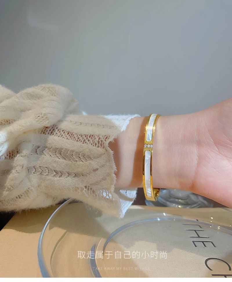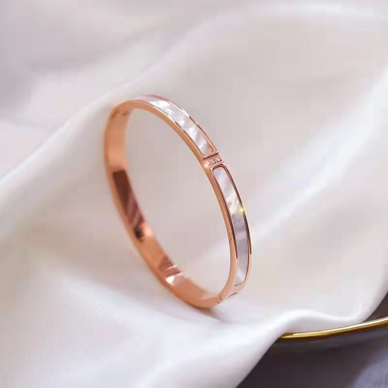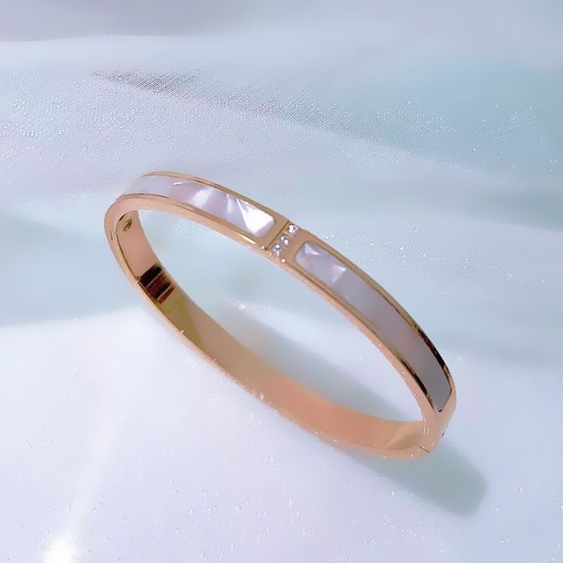 手镯贝母面玫瑰金时尚轻奢韩风精致百搭钛钢手镯