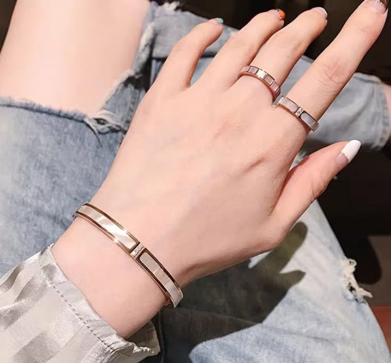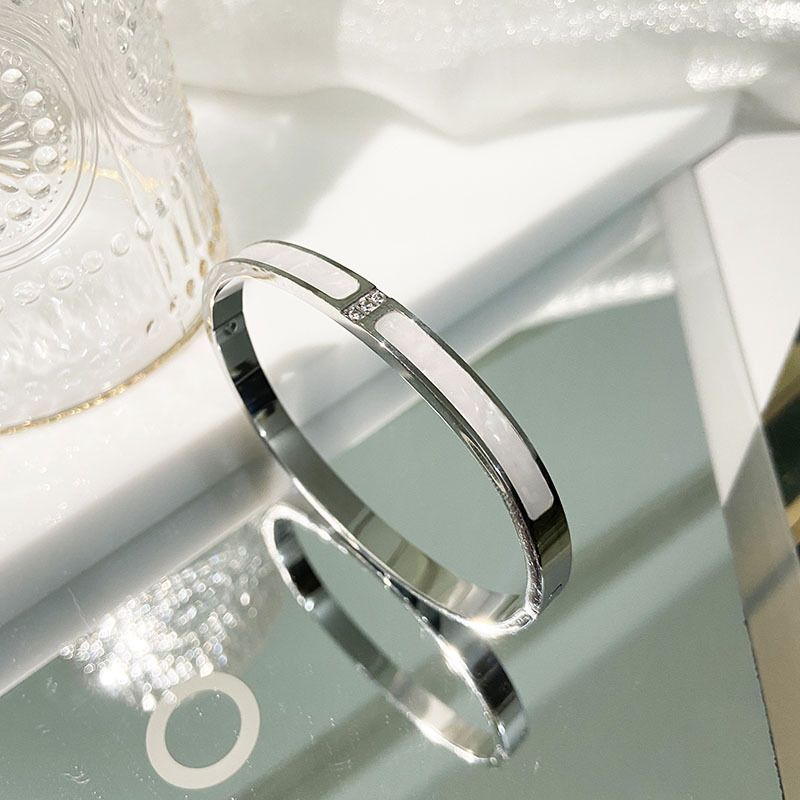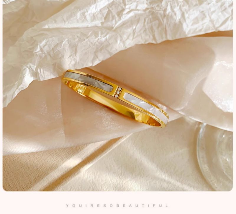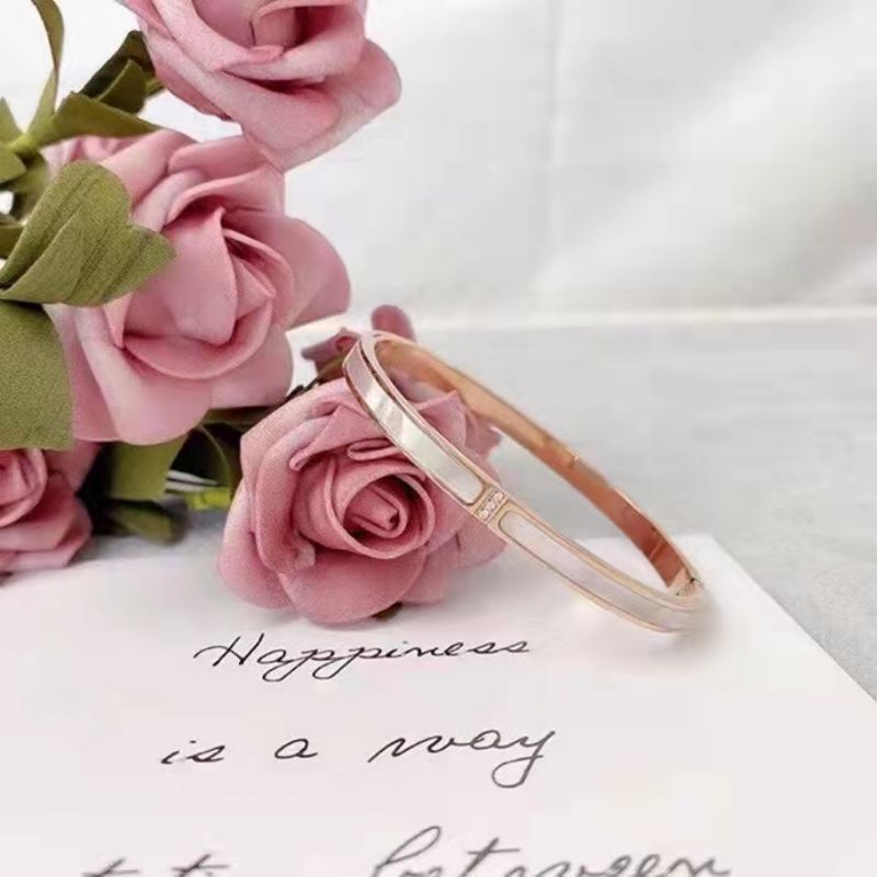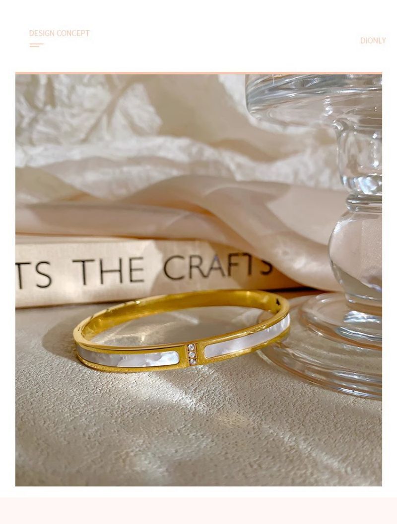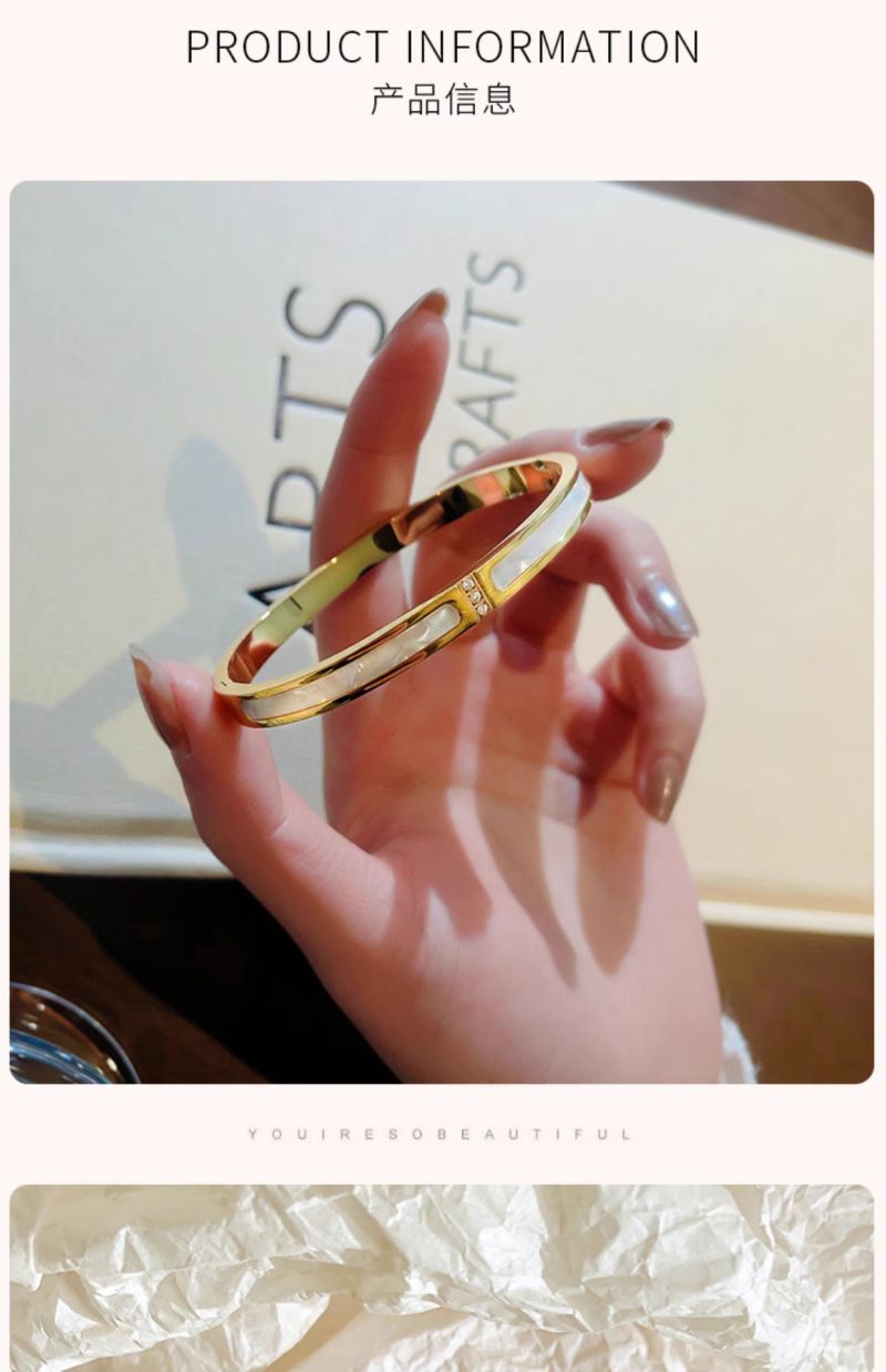 手镯贝母面玫瑰金时尚轻奢韩风精致百搭钛钢手镯
