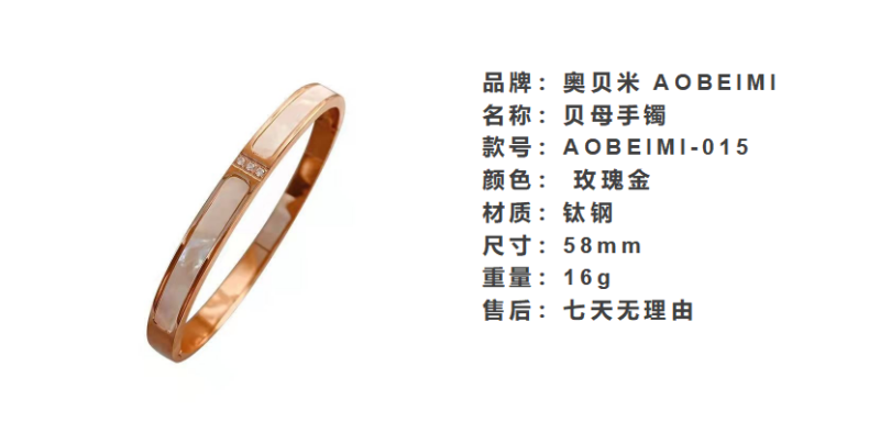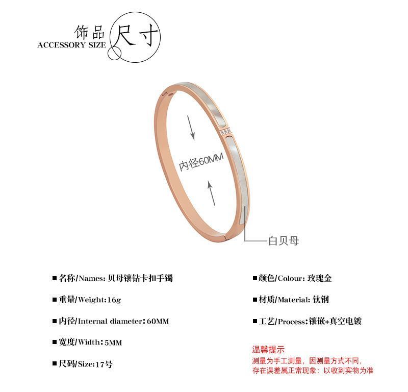 商品名称:手镯贝母面玫瑰金时尚轻奢韩风精致百搭钛钢手镯