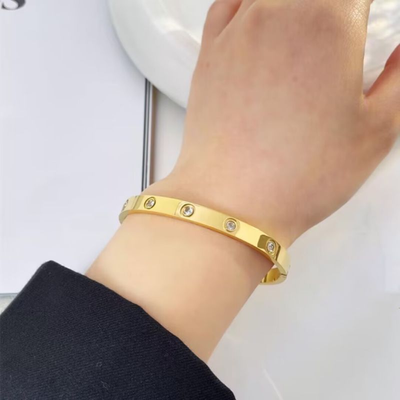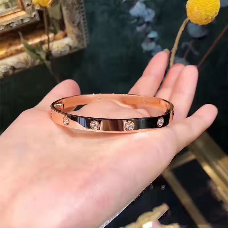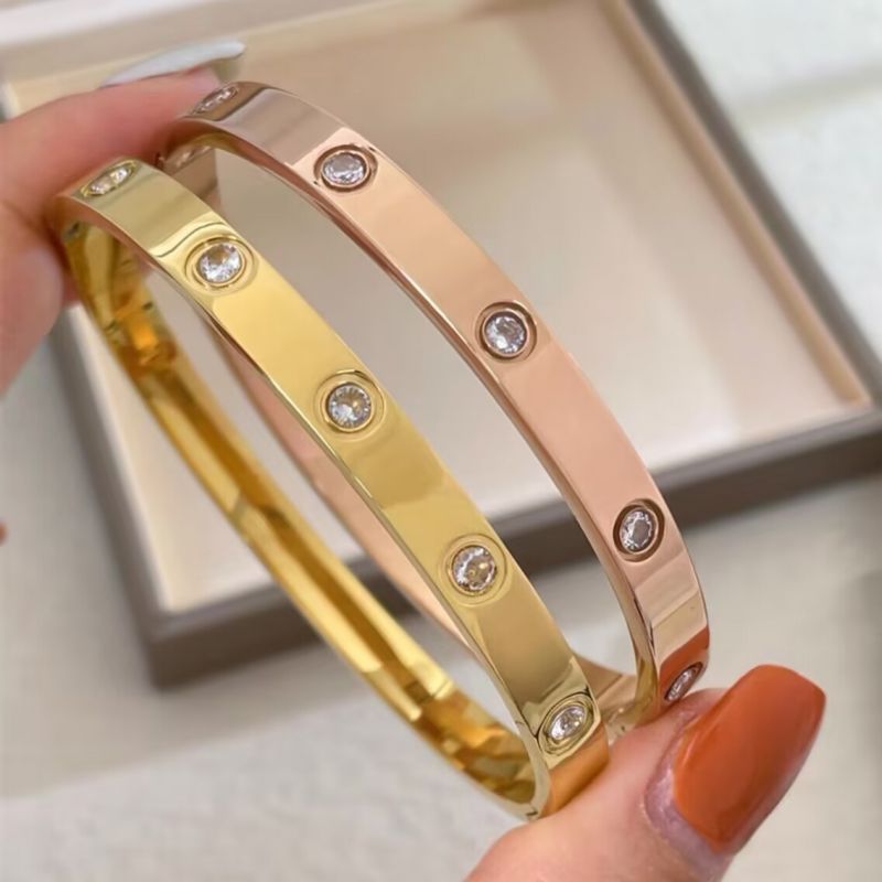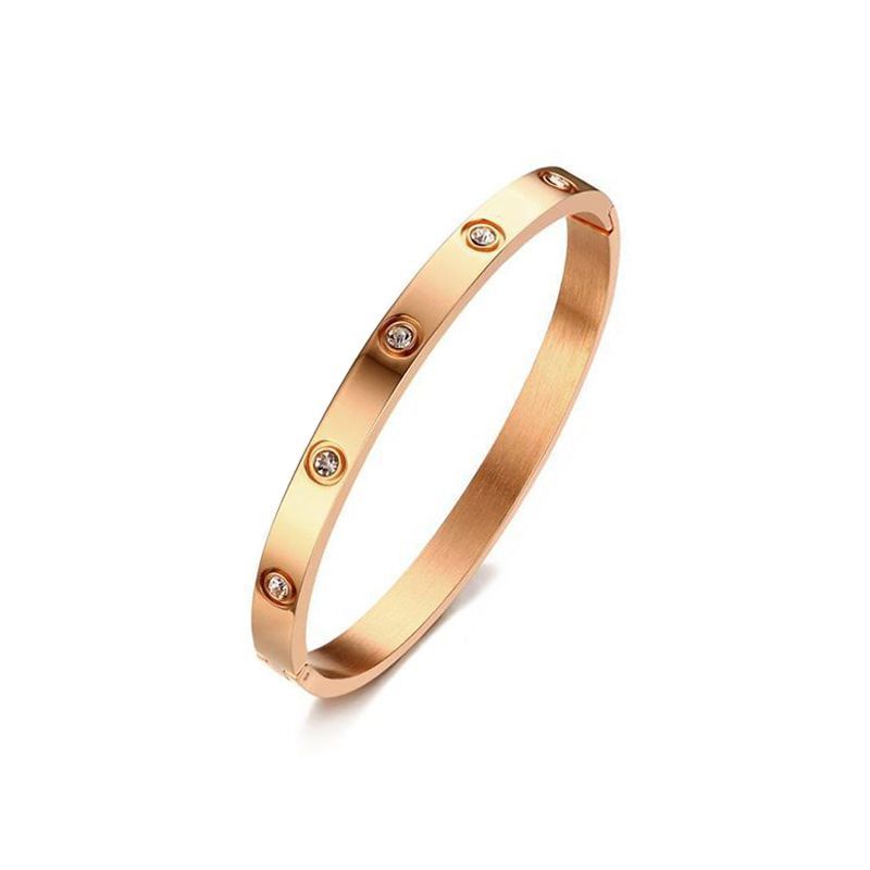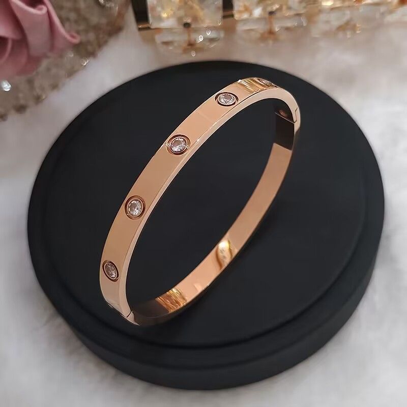 经典玫瑰金宽版黄金色镶钻手镯