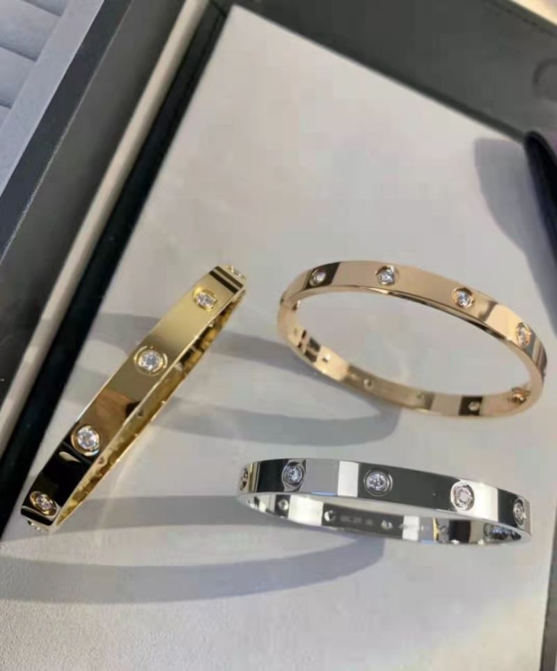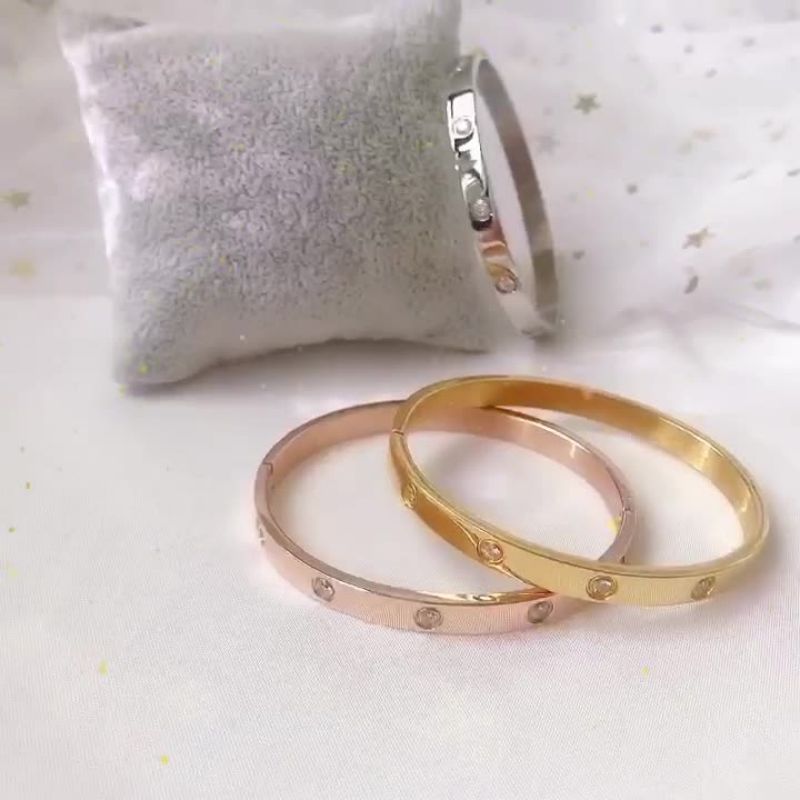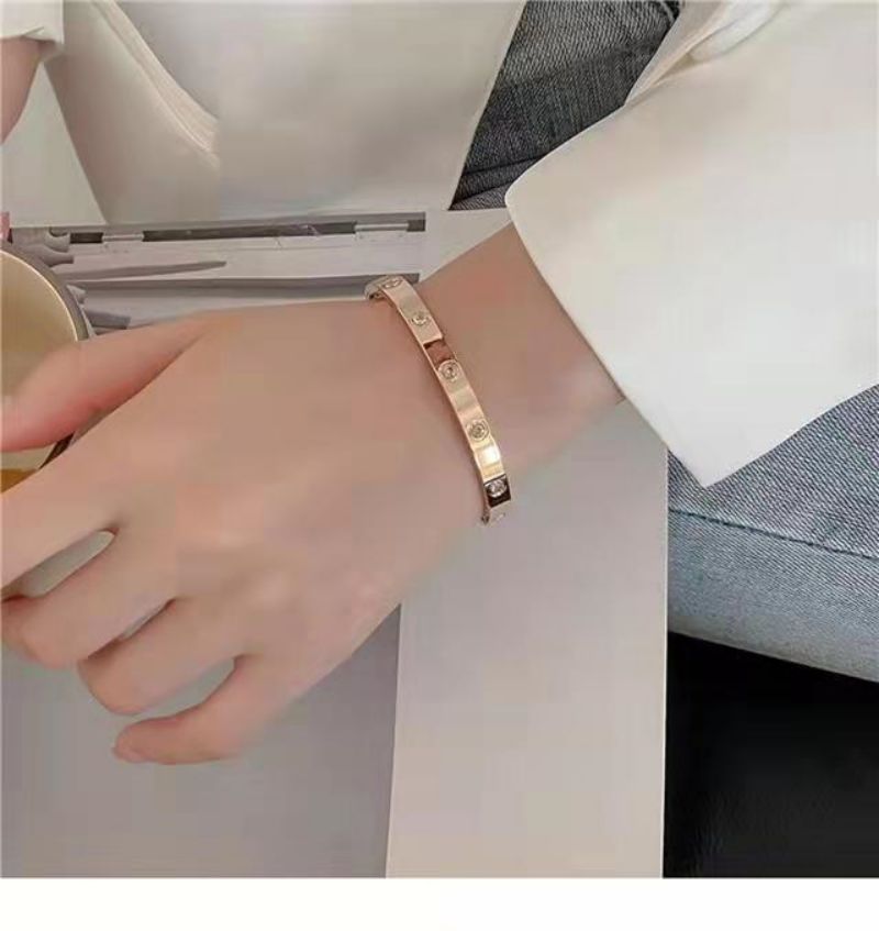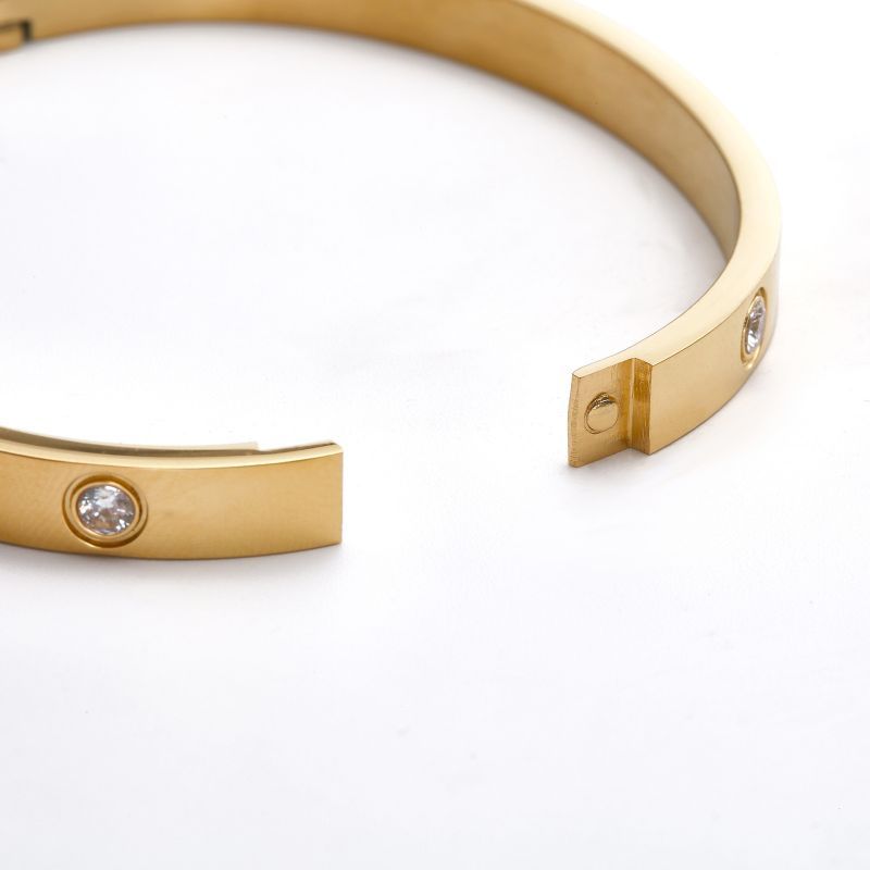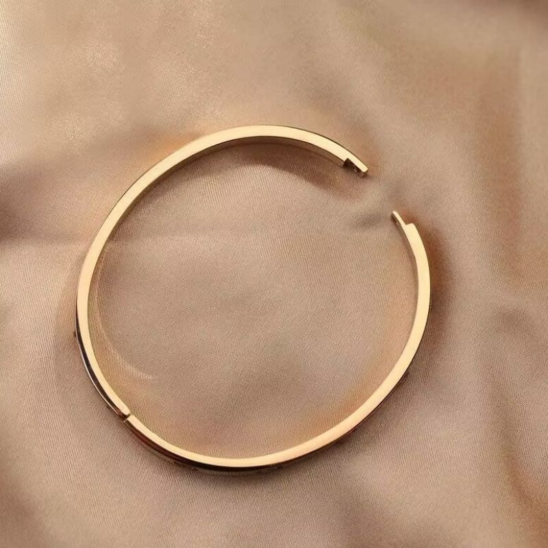 经典玫瑰金宽版黄金色镶钻手镯