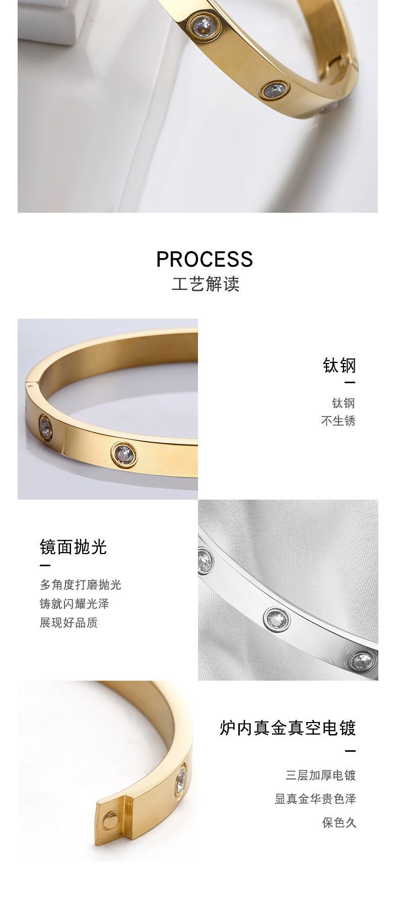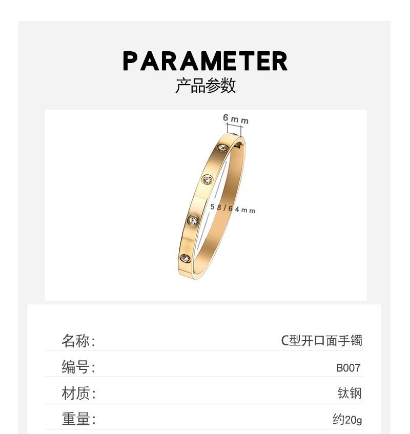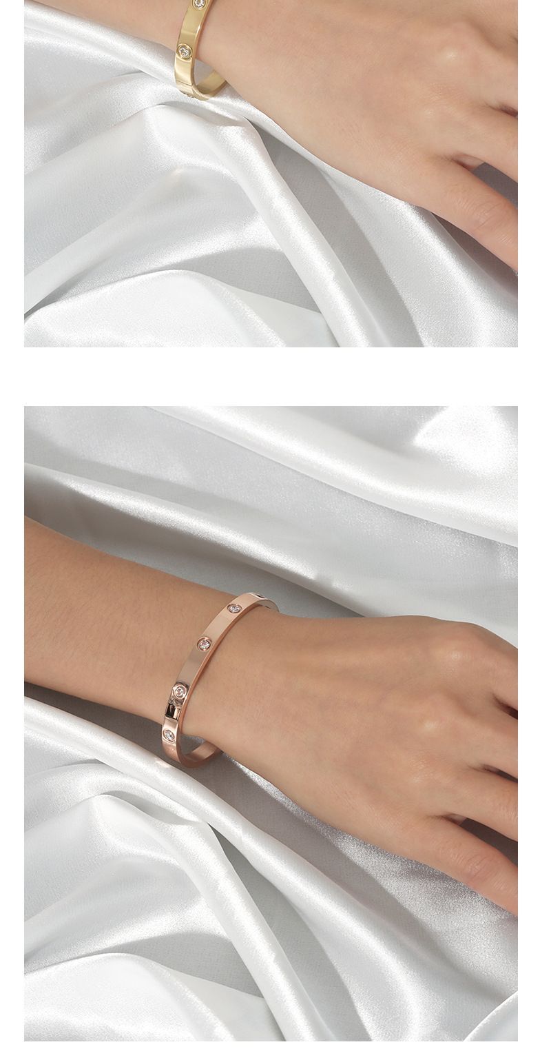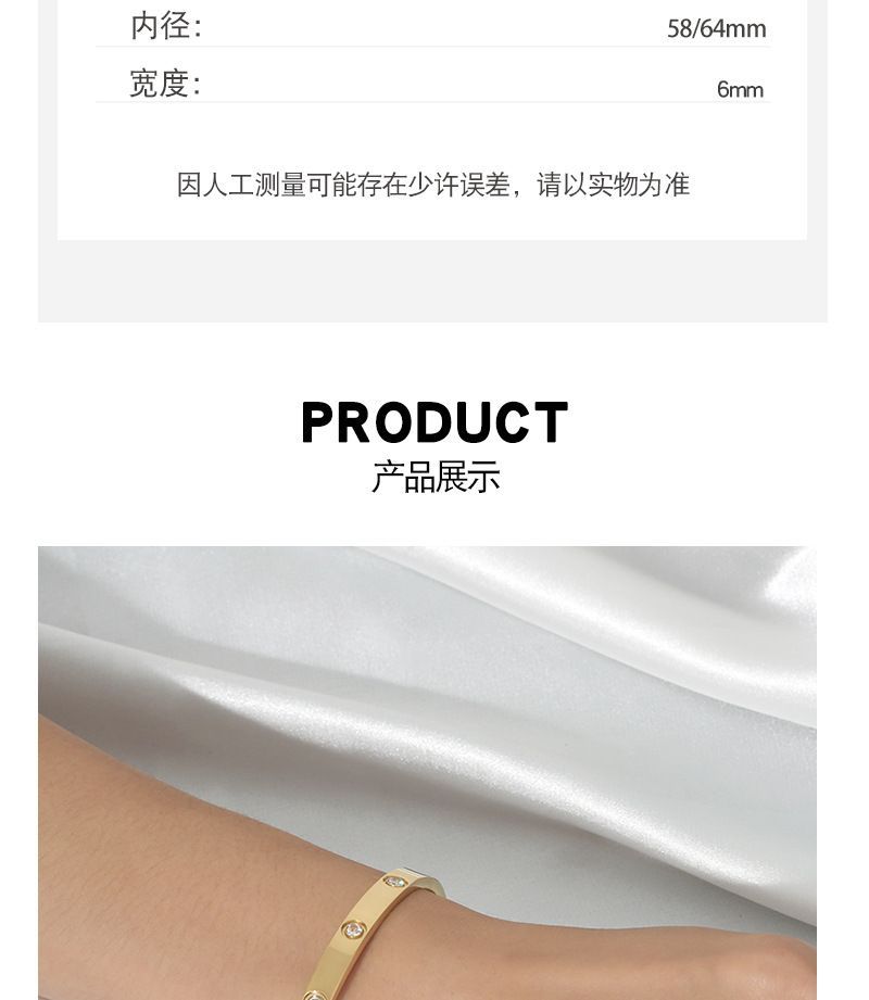 商品名称:经典玫瑰金宽版黄金色镶钻手镯