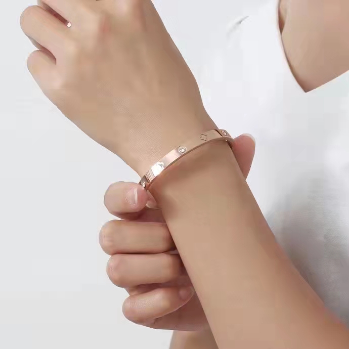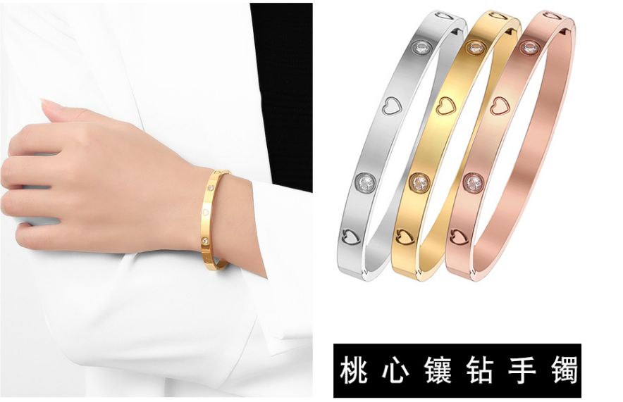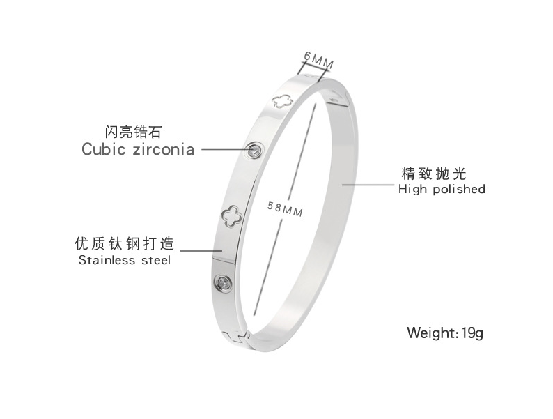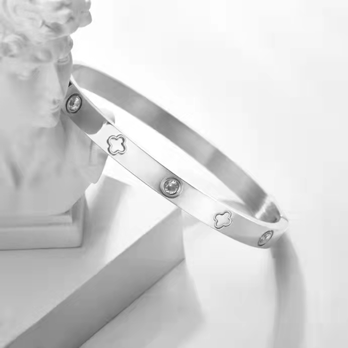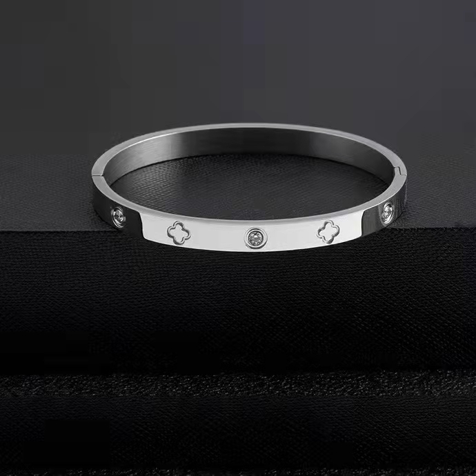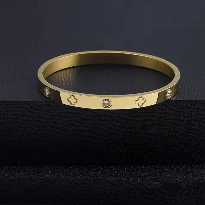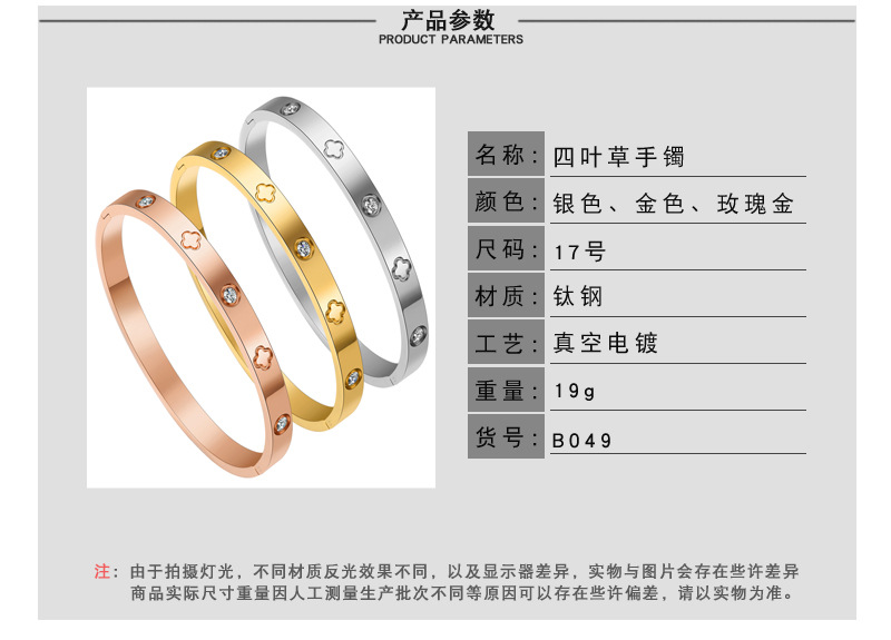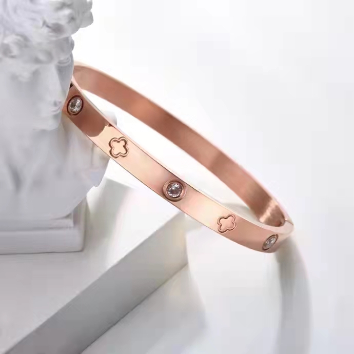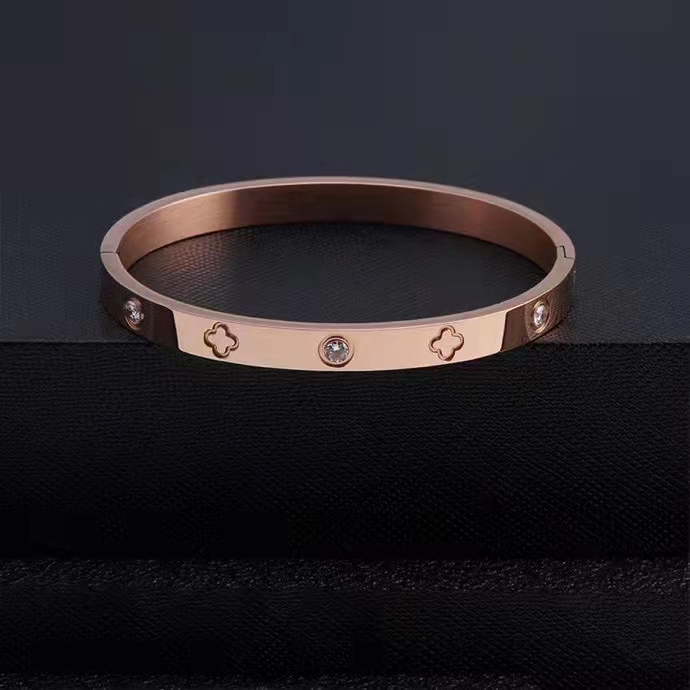 商品名称:钛钢轻奢气质简约手镯保色韩版镶钻奢华高端大气时尚四叶草手镯玫瑰金色