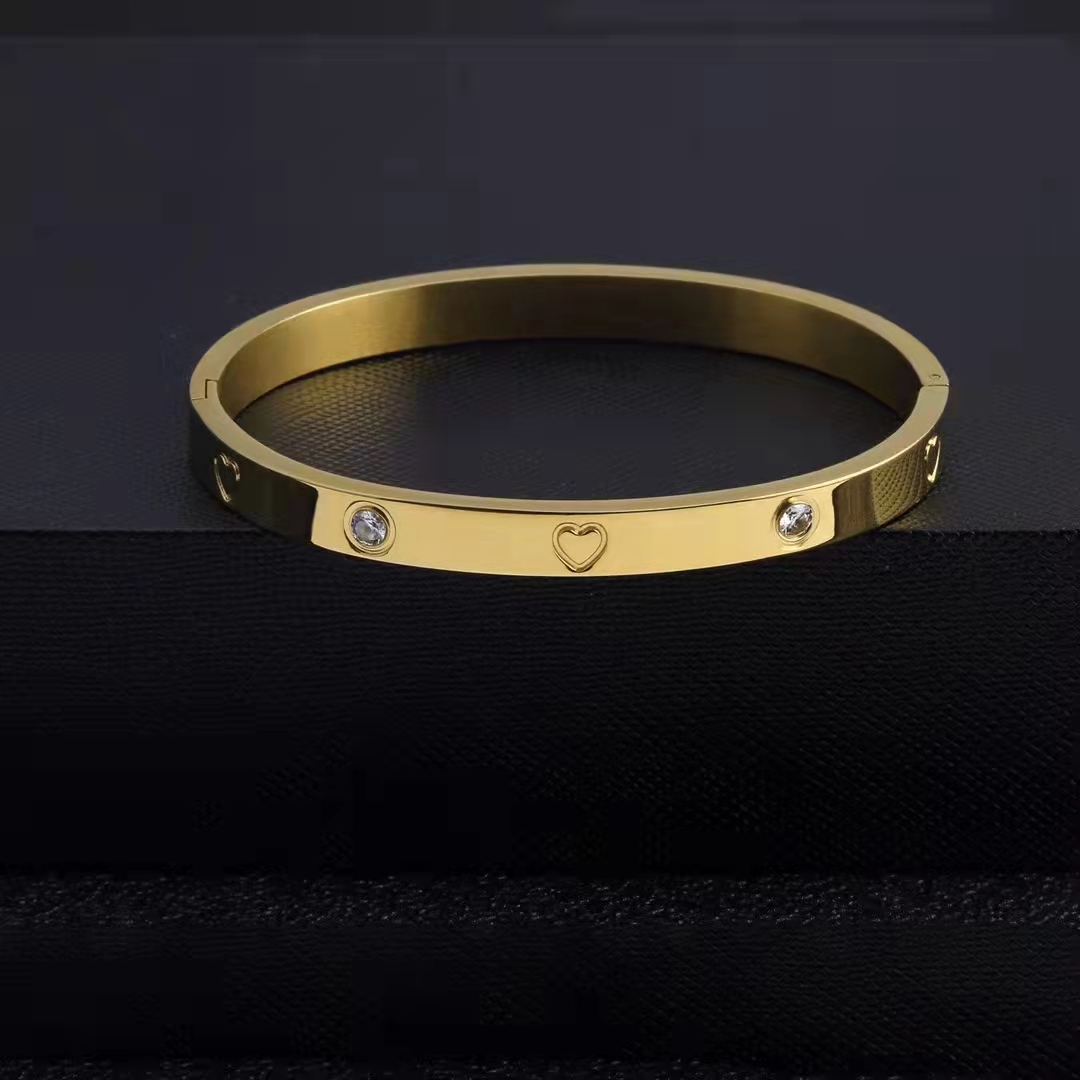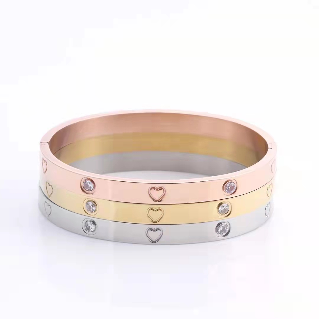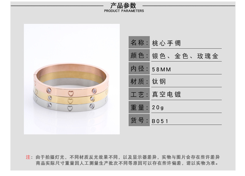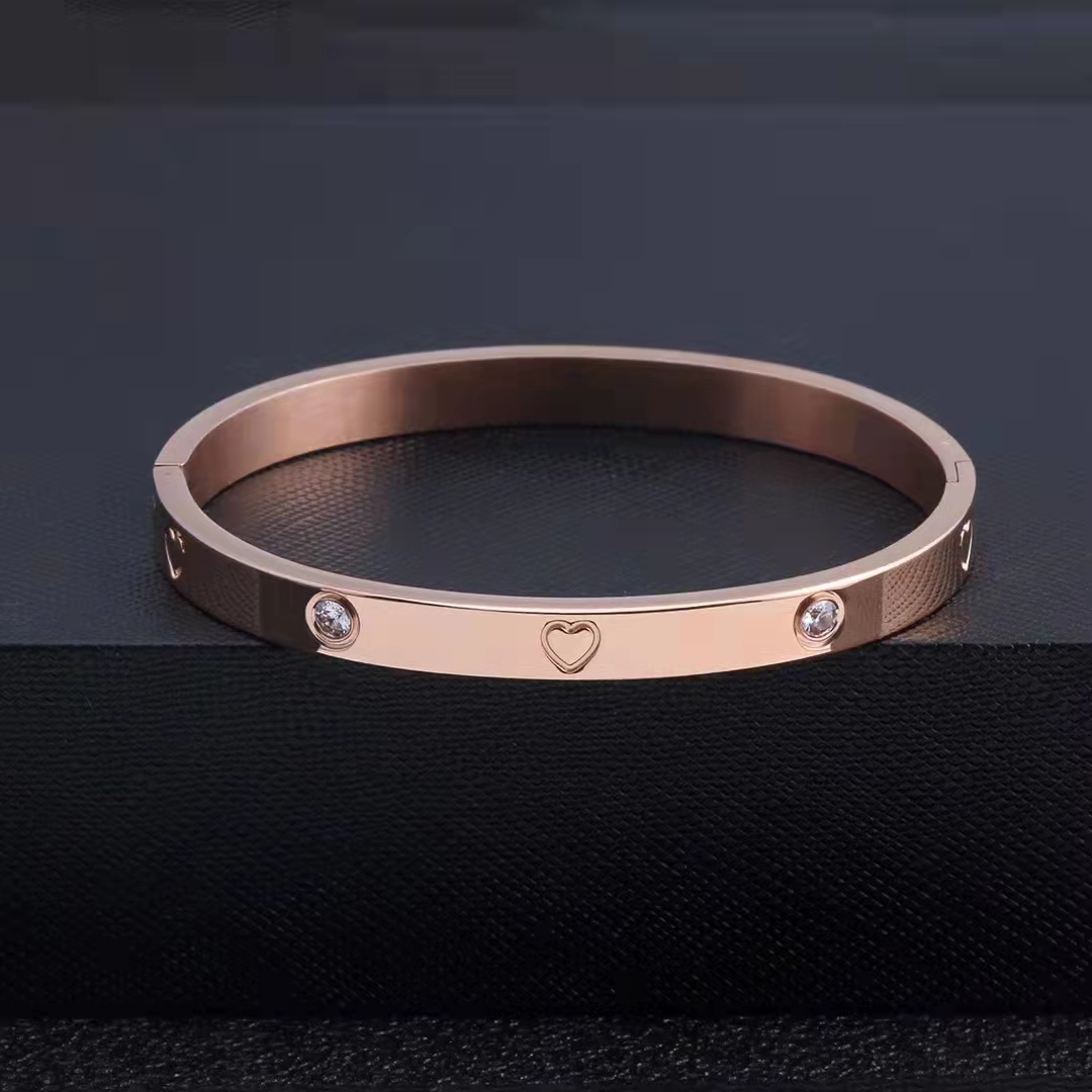 商品名称:钛钢轻奢气质简约手镯保色韩版镶钻奢华高端大气时尚四叶草手镯玫瑰金色