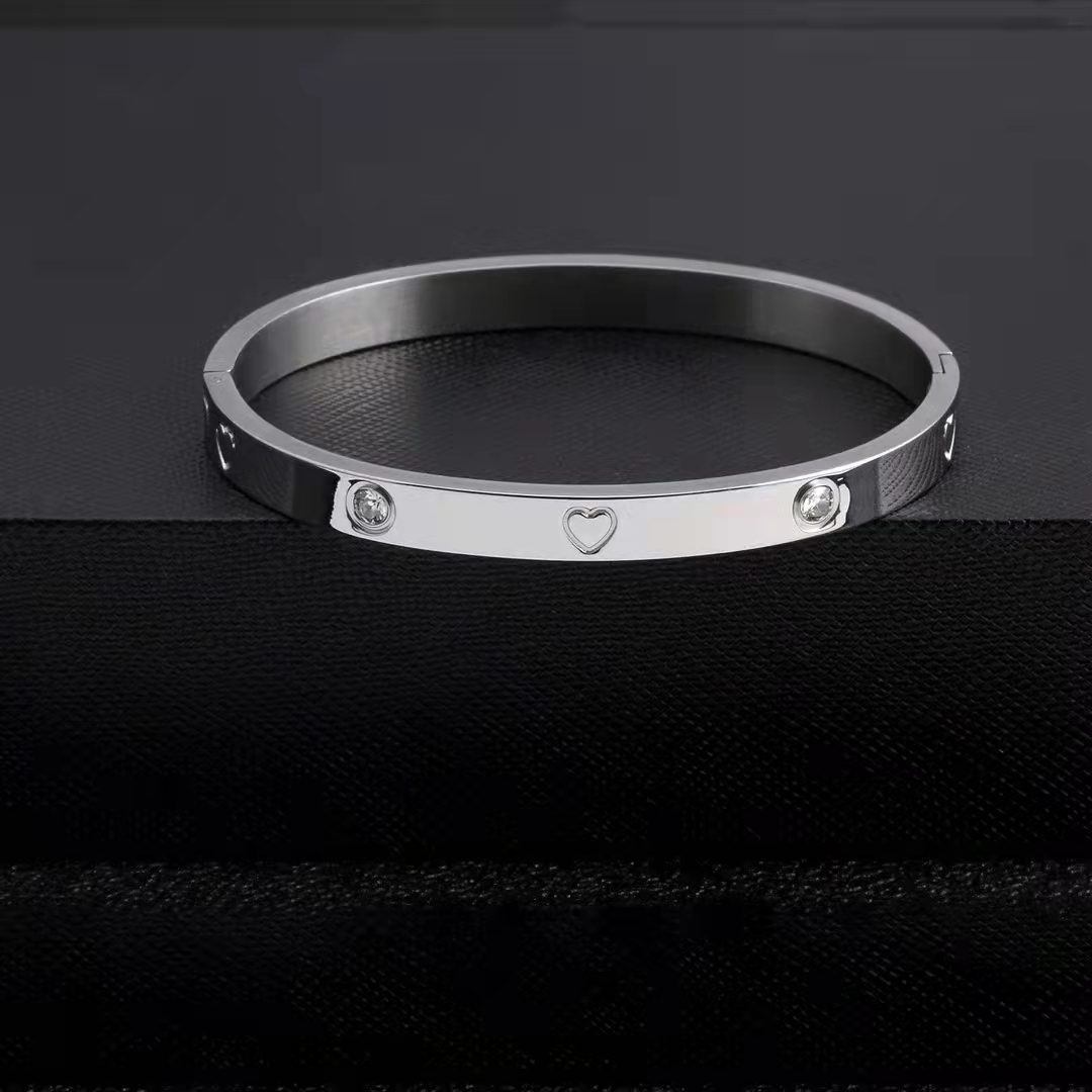 钛钢轻奢气质简约手镯保色韩版镶钻奢华高端大气时尚四叶草手镯玫瑰金色