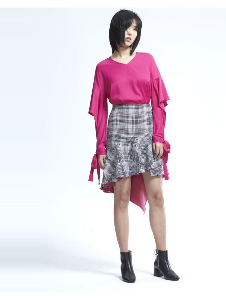 商品名称:PORTS PURE宝姿女装简约格纹A字裙不规则短裙 225994