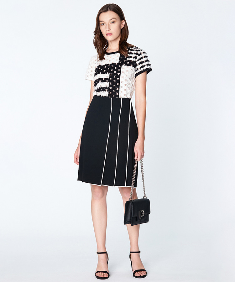 商品名称:宝姿春夏女装时尚日常休闲通勤百搭撞色压褶半身裙 029770