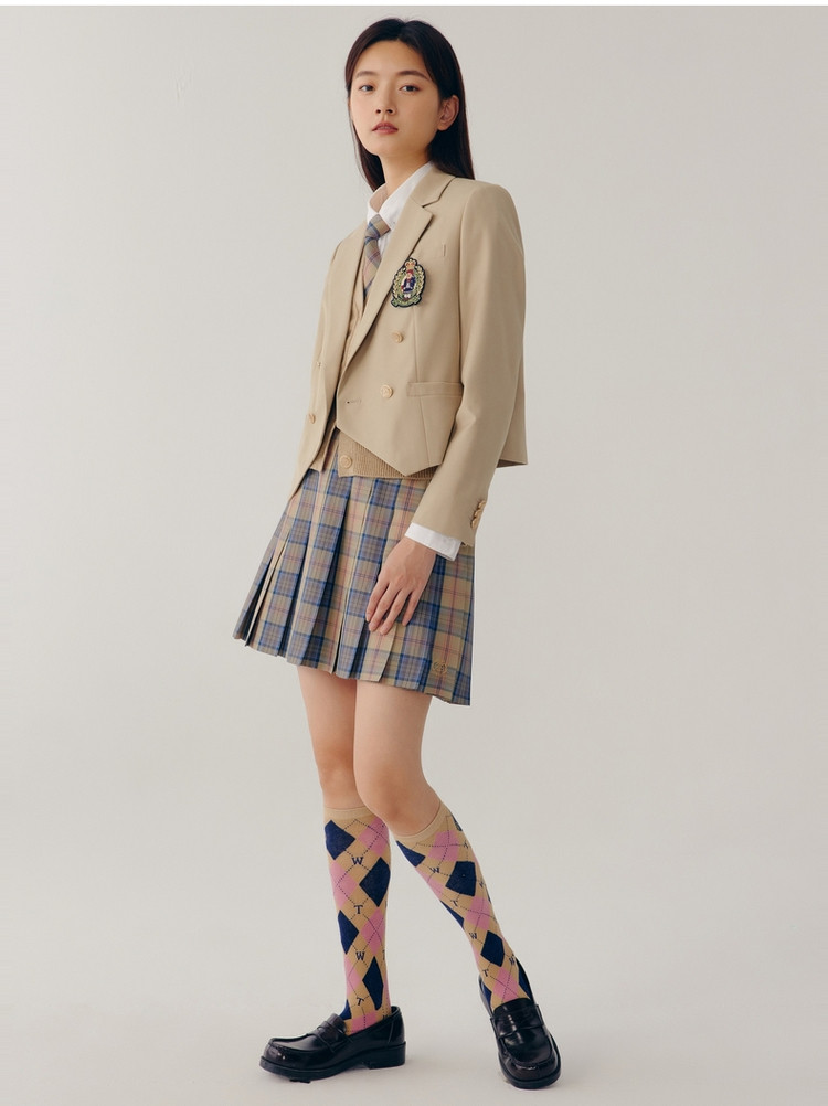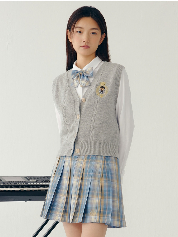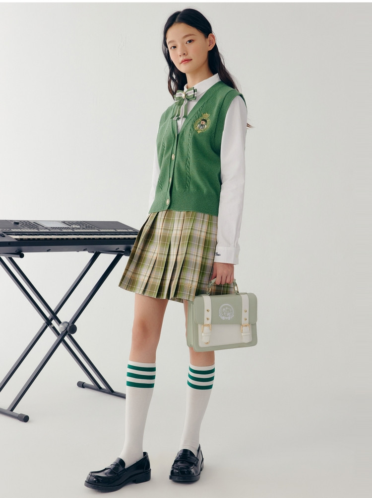 【赵露思同款】小熊JK制服百褶格纹半身裙女秋季 183041