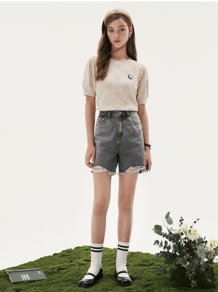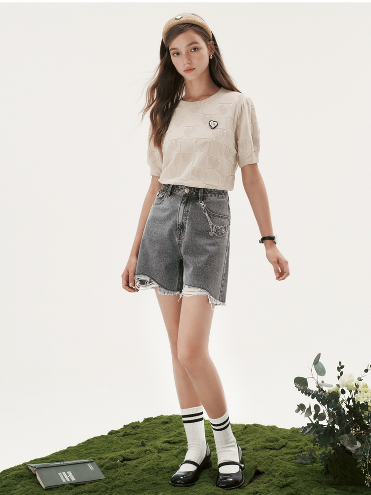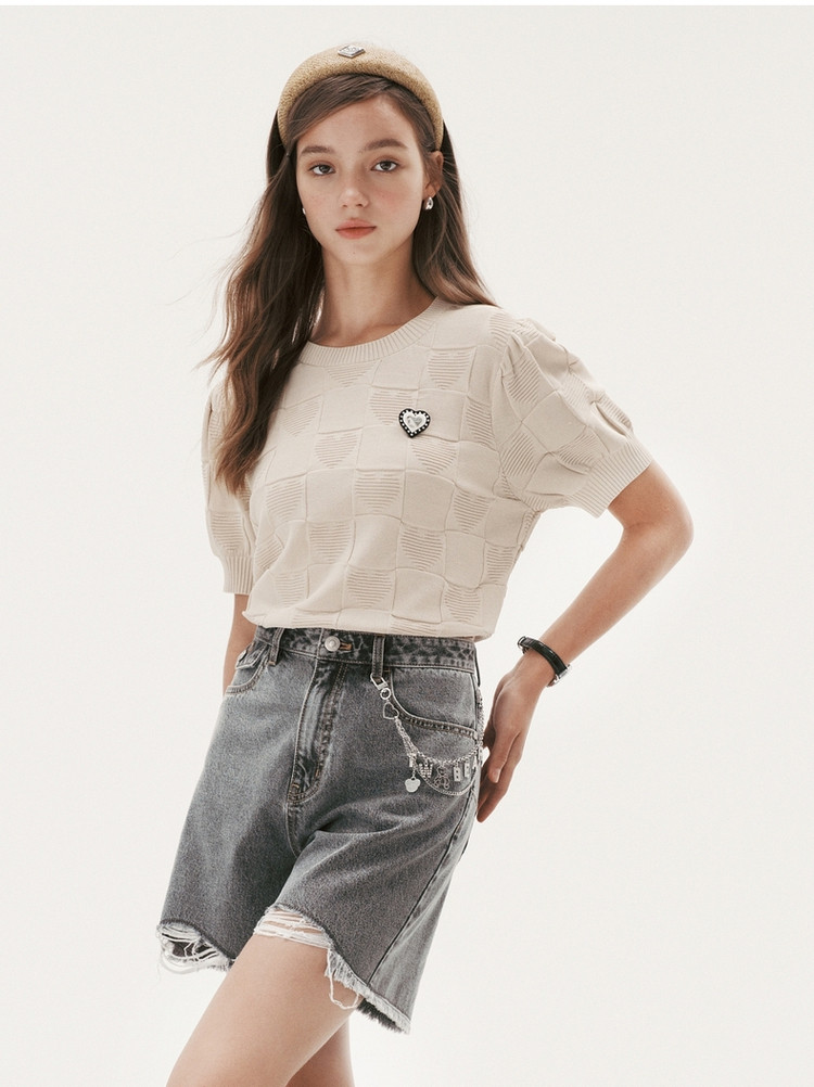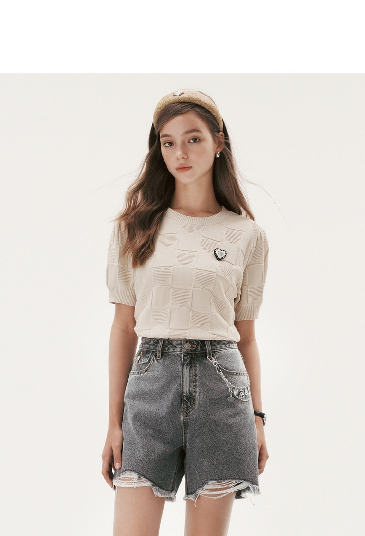 小熊薄款短袖针织衫套头薄款短款上衣女夏季 441601