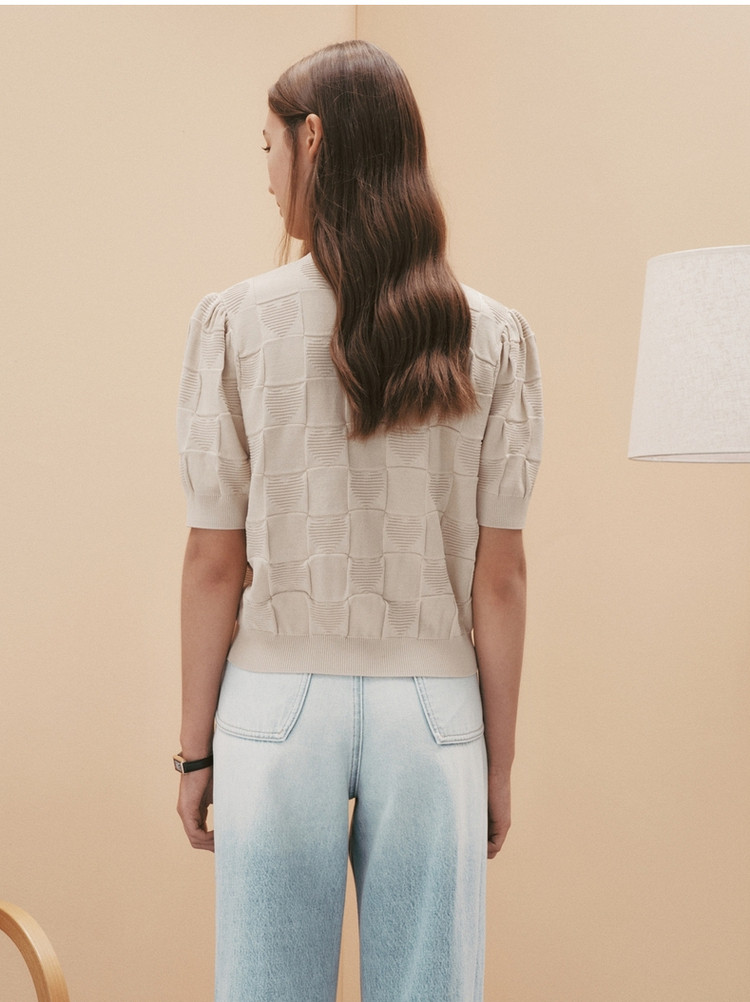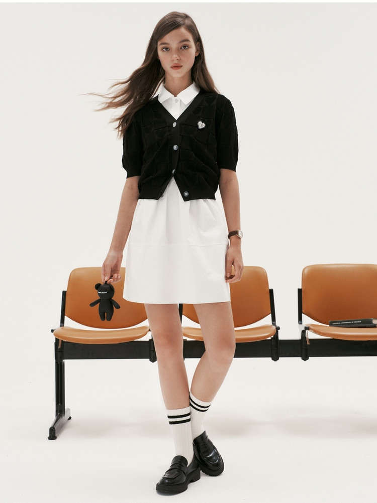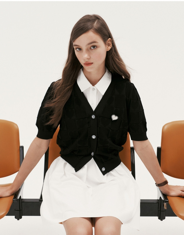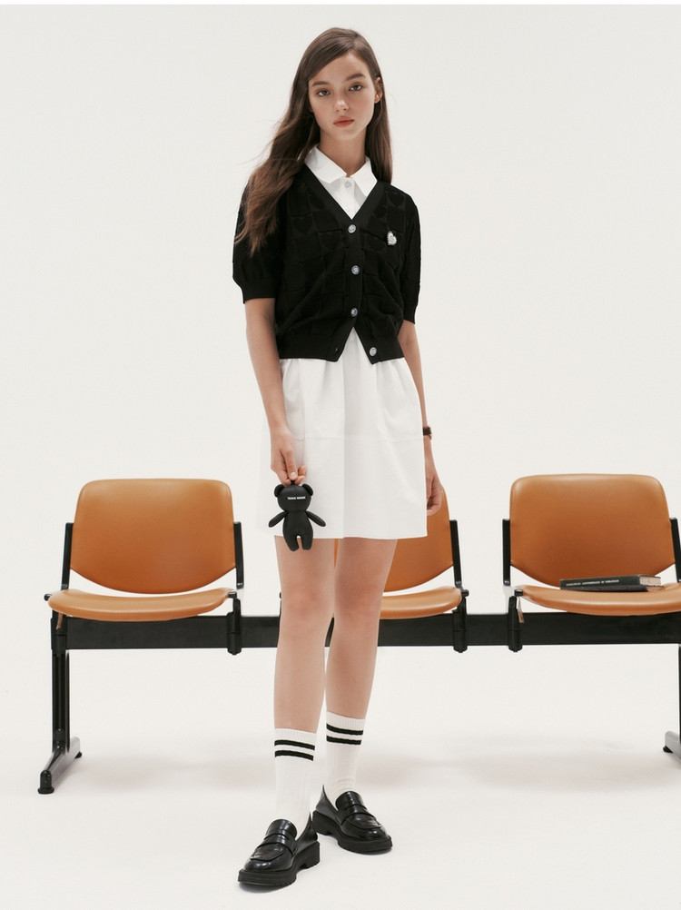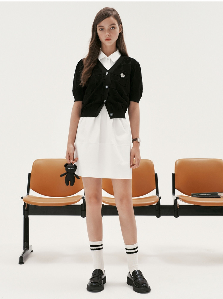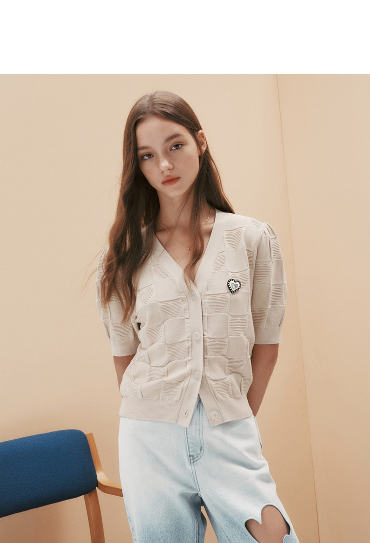 商品名称:小熊提花短袖针织衫开衫薄款外穿短款上衣女装夏 930881