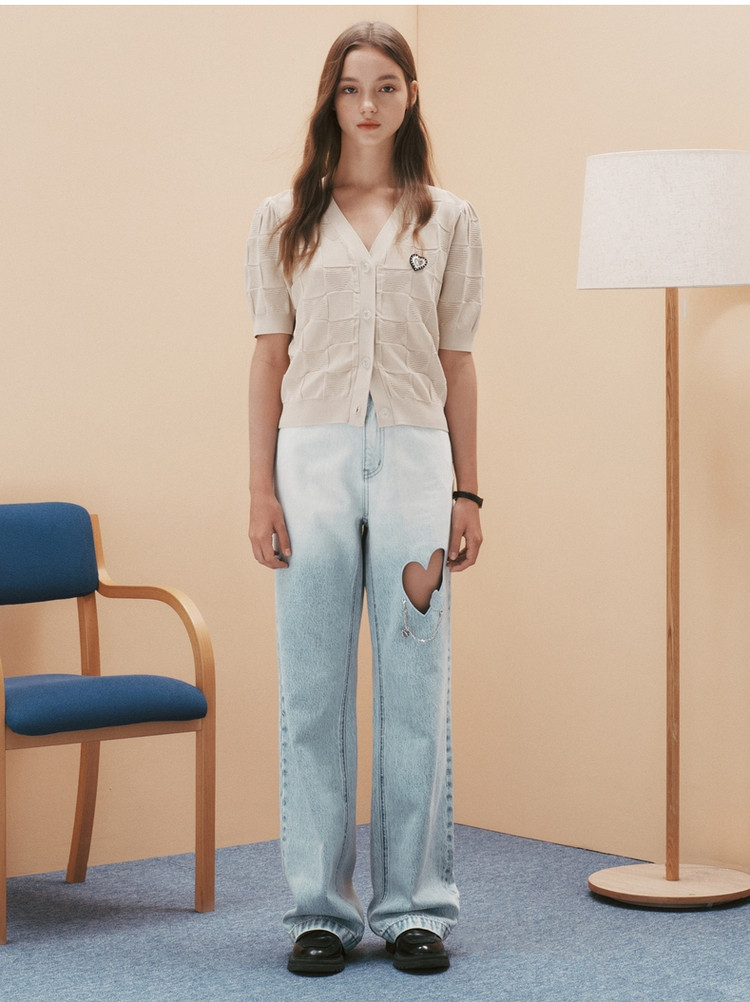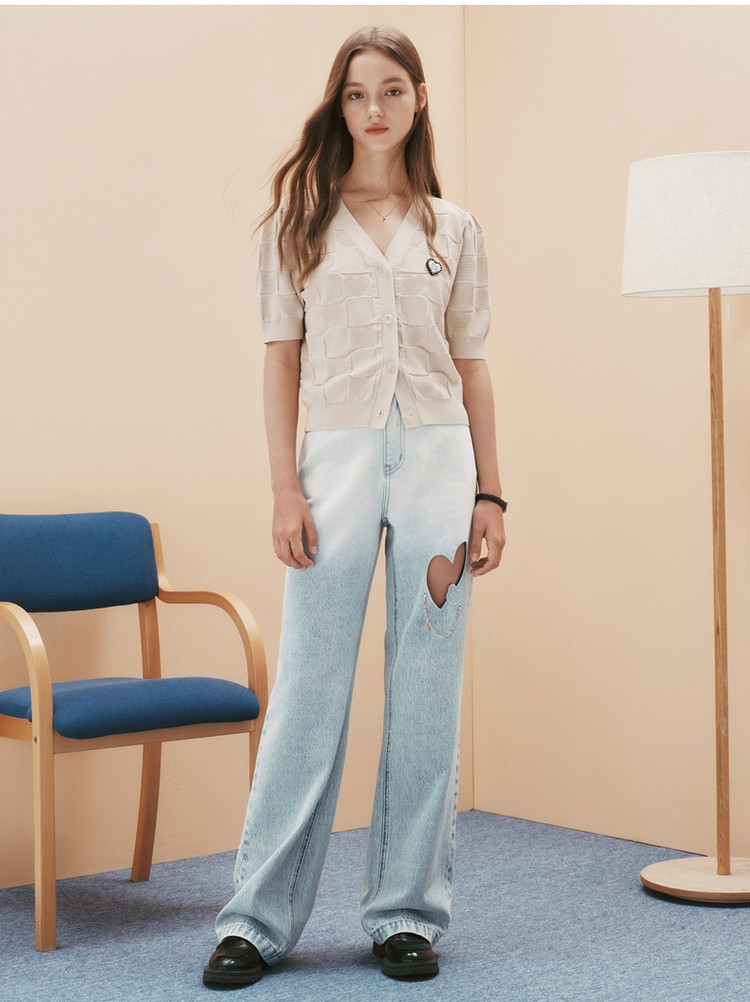 小熊提花短袖针织衫开衫薄款外穿短款上衣女装夏 930881