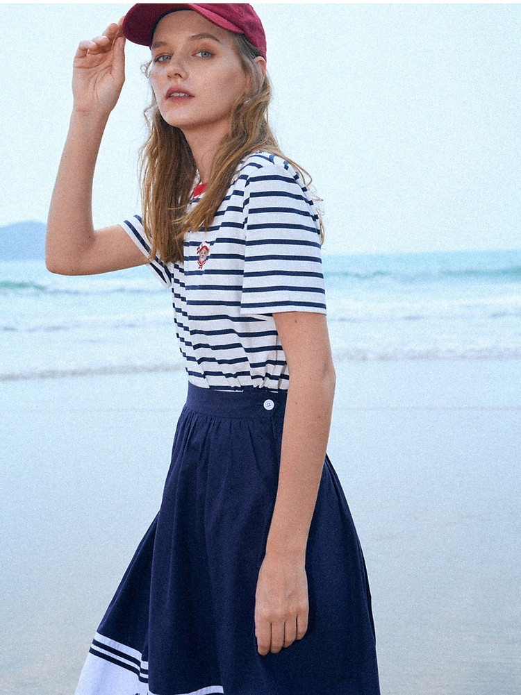 商品名称:小熊半身裙学院风短裙A字高腰女装夏季款 425857