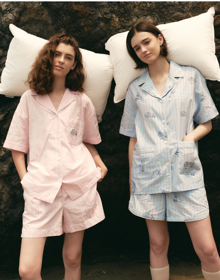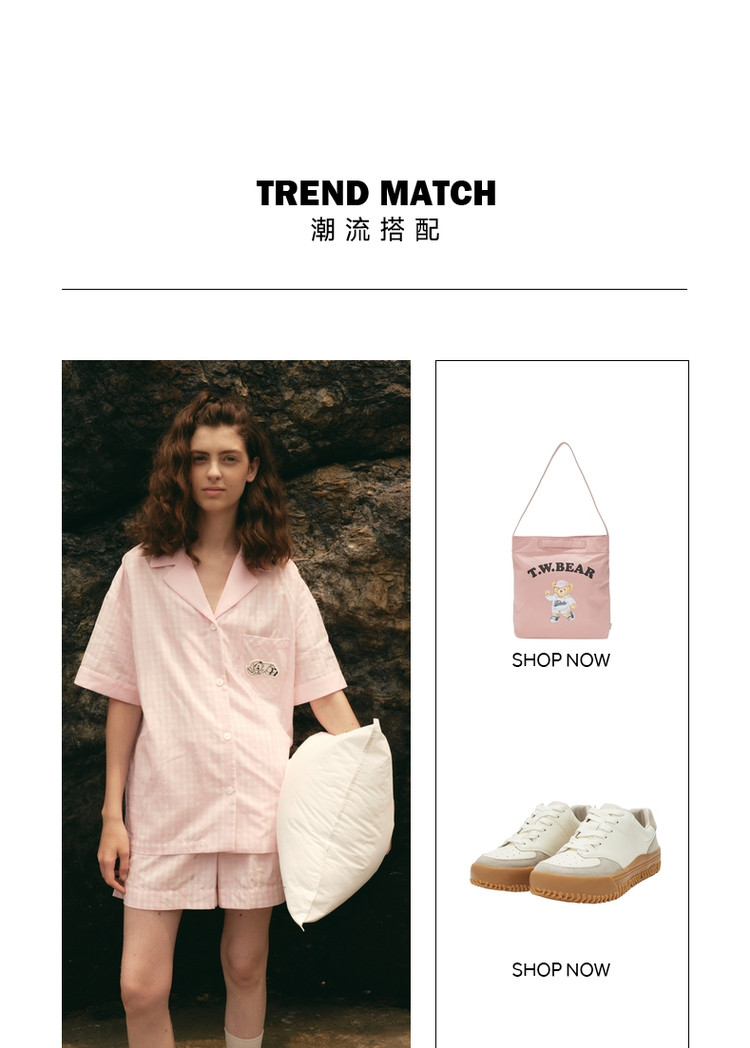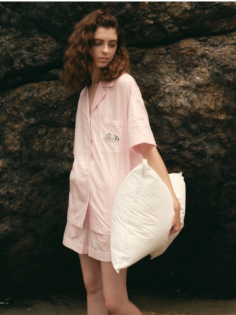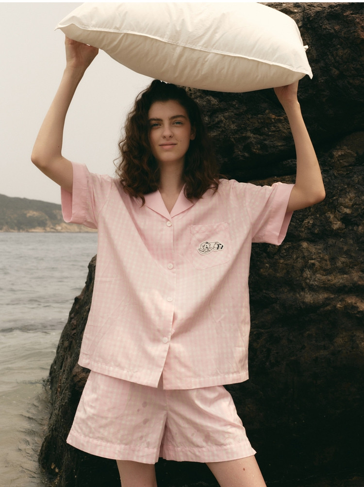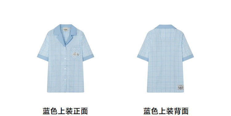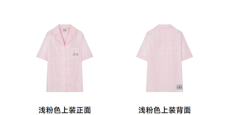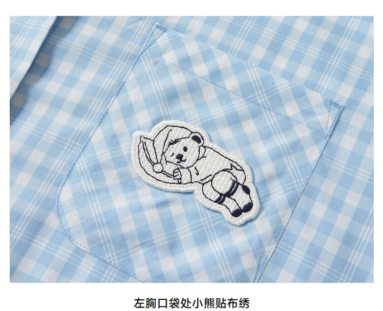 商品名称:小熊抑菌功能性格纹短套装睡衣莱赛尔家居服女夏 516033