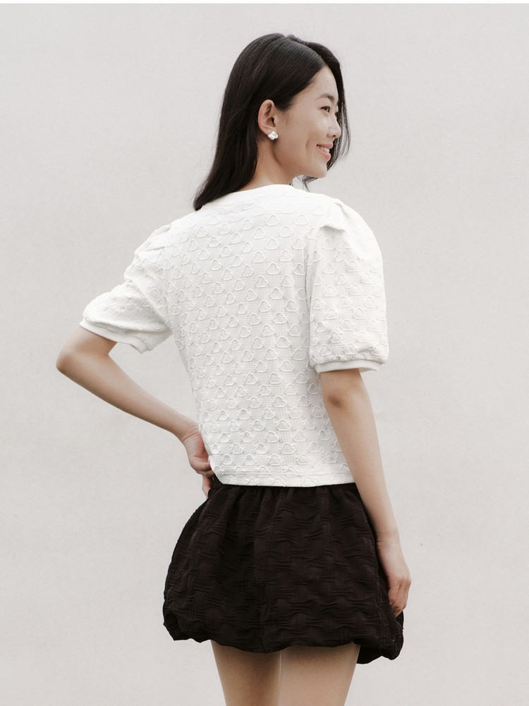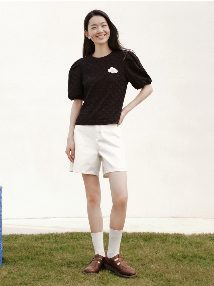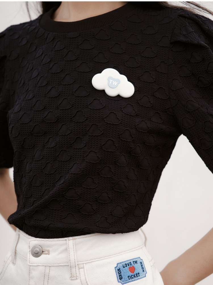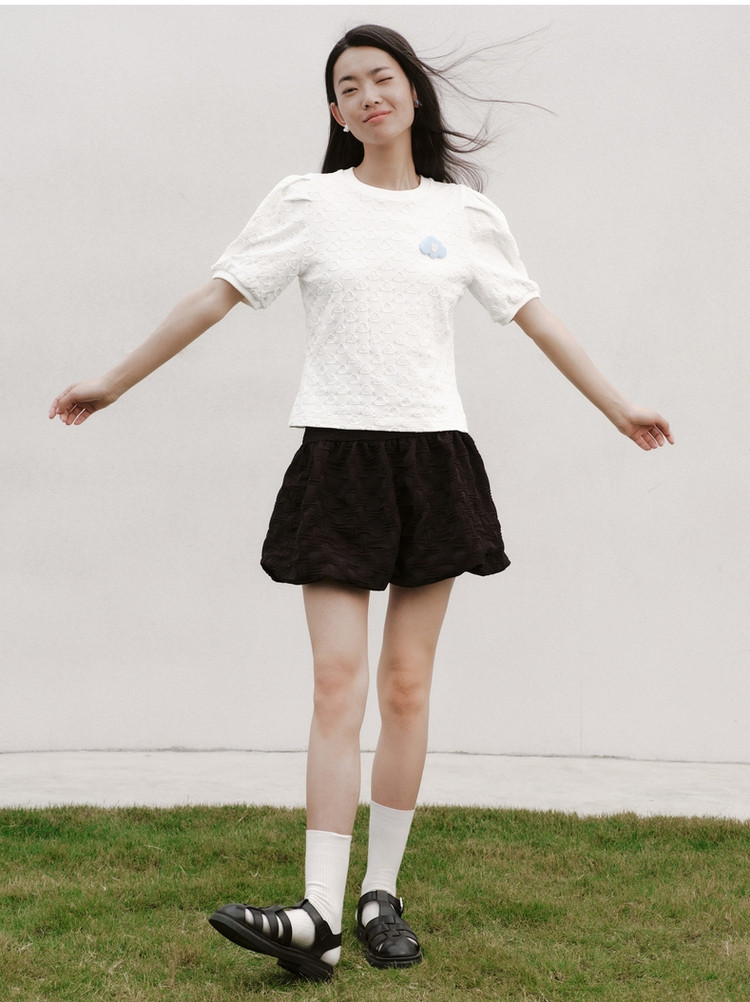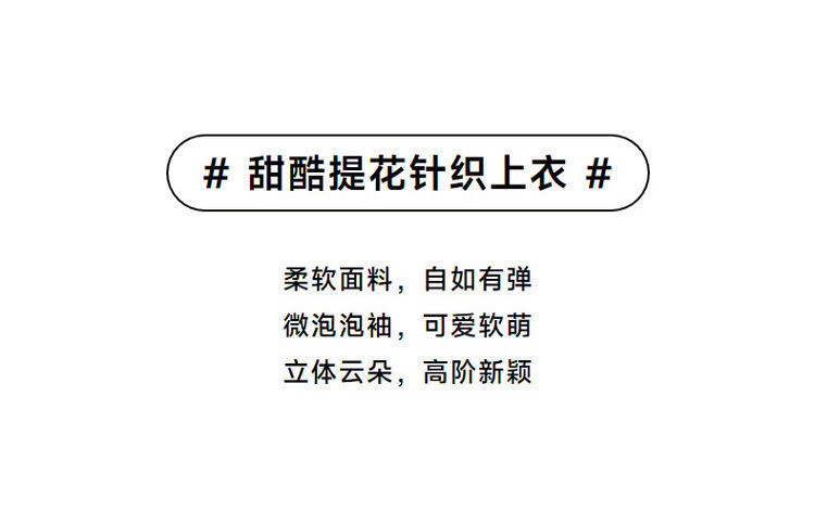 商品名称:【提花针织】T恤女短袖甜酷提花泡泡袖可爱针织上衣 978433