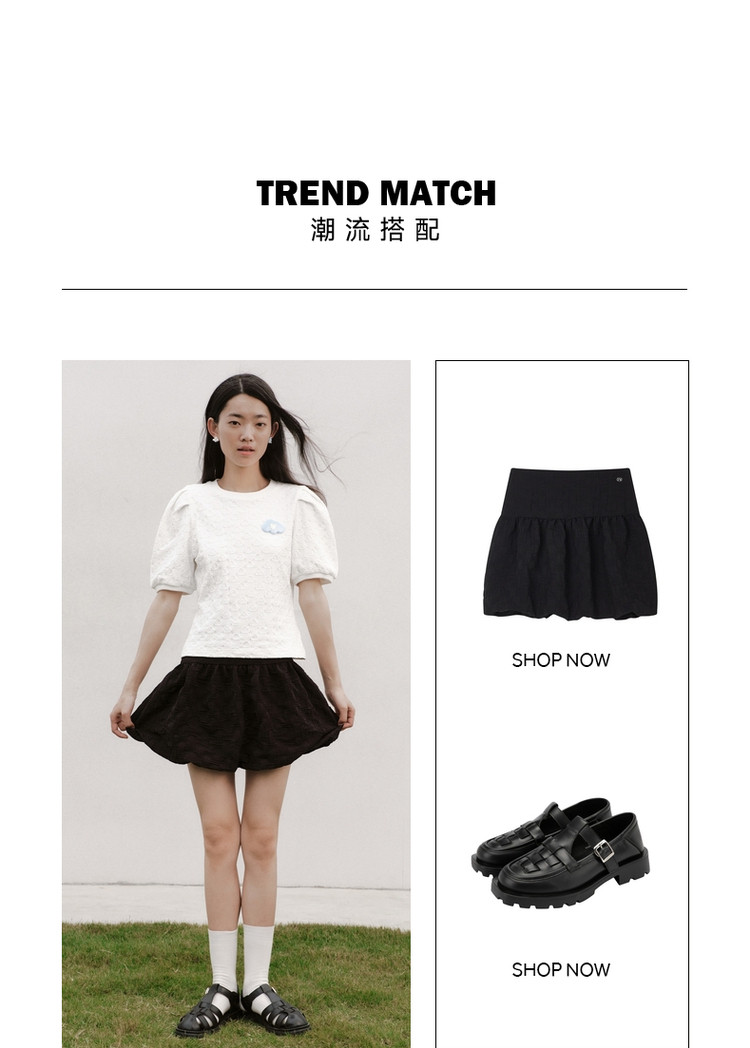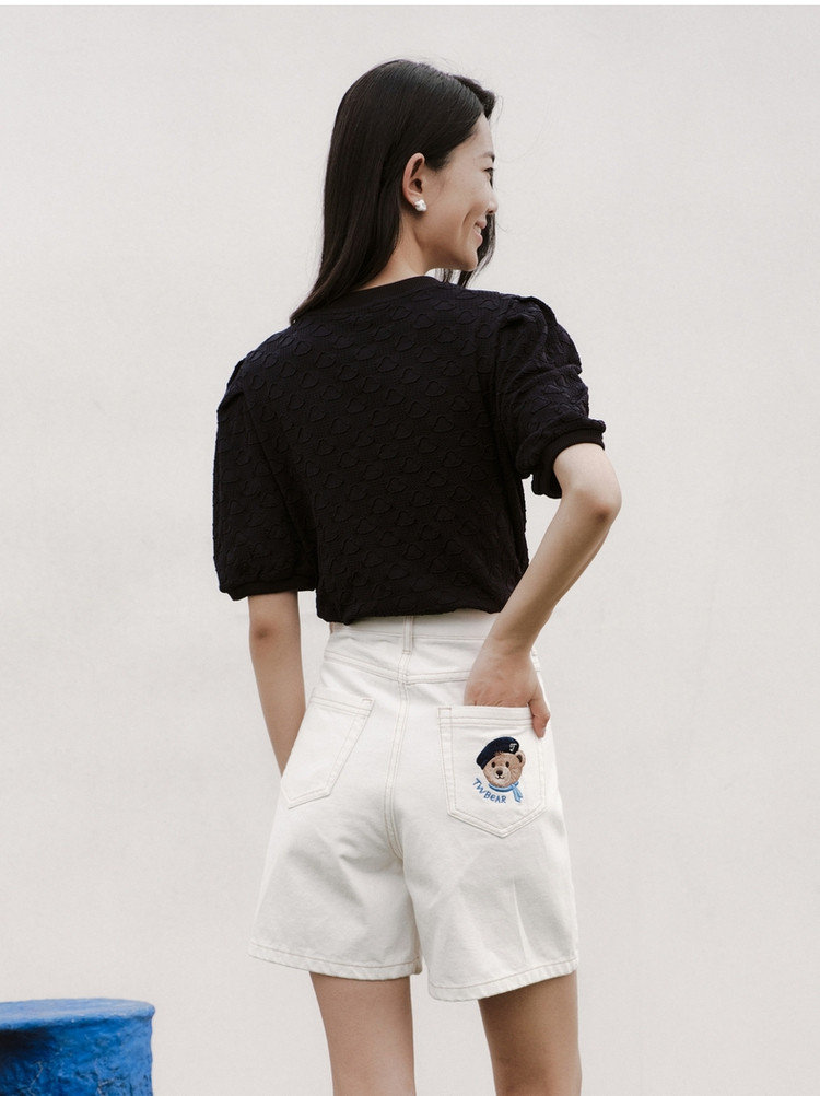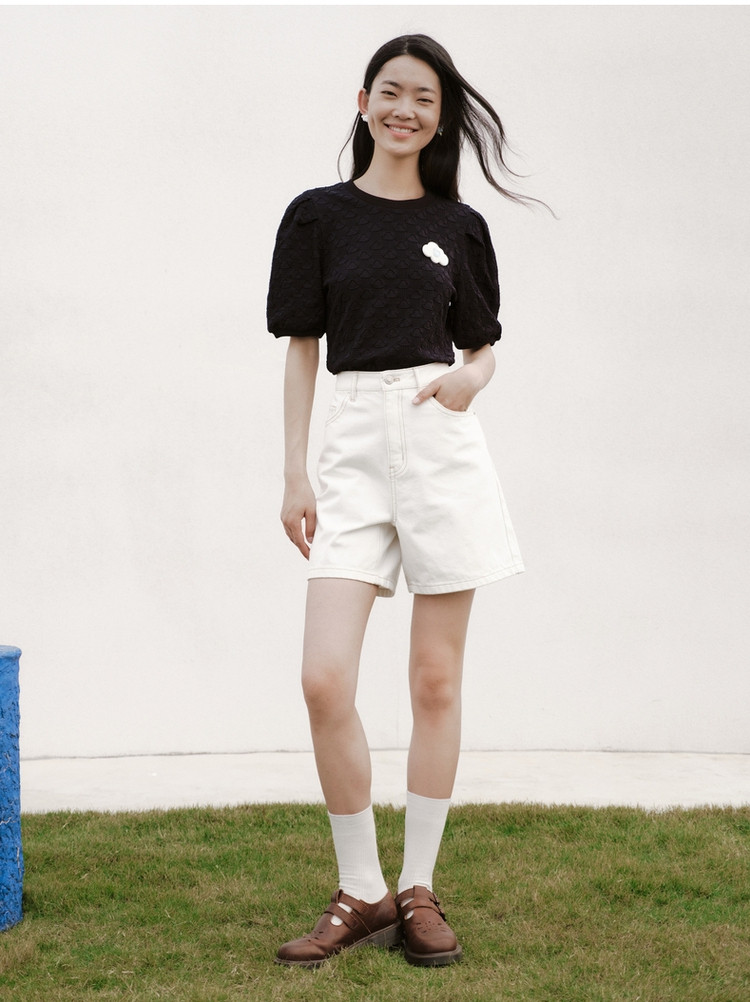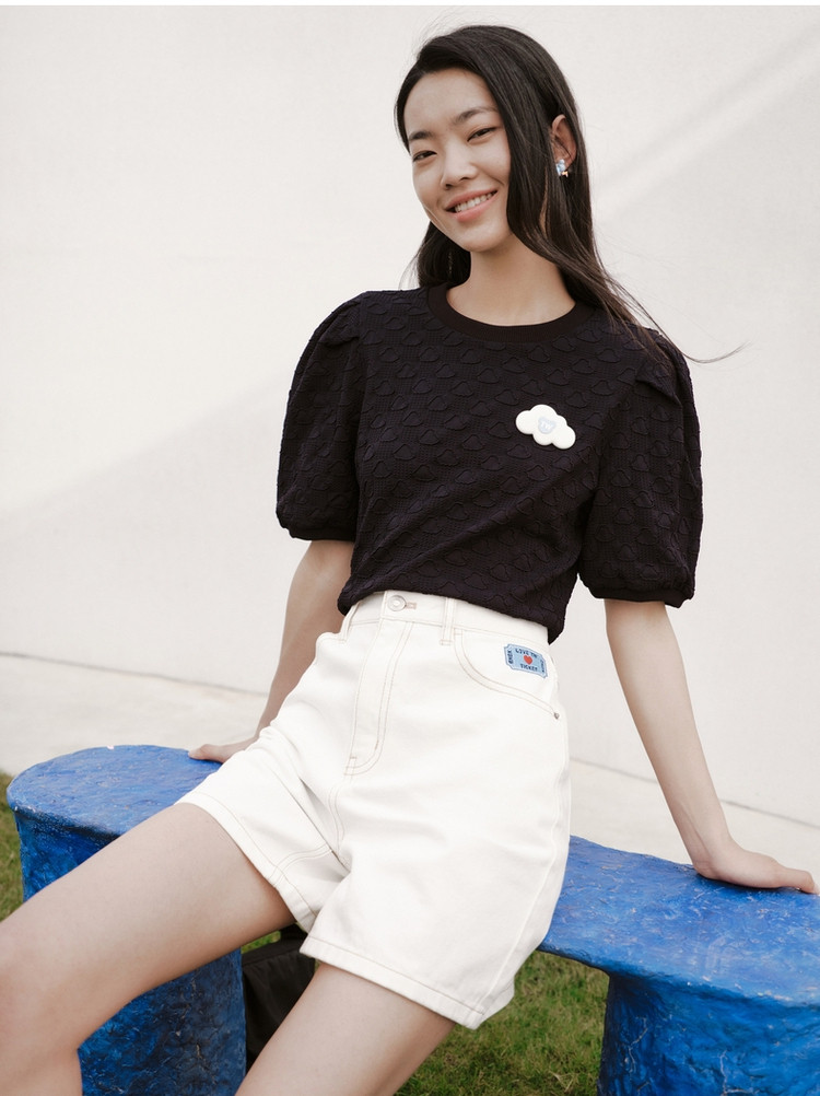 商品名称:【提花针织】T恤女短袖甜酷提花泡泡袖可爱针织上衣 978433