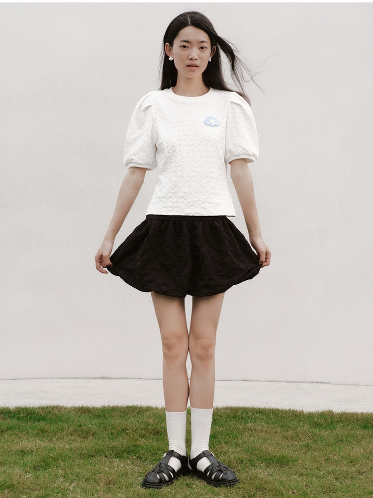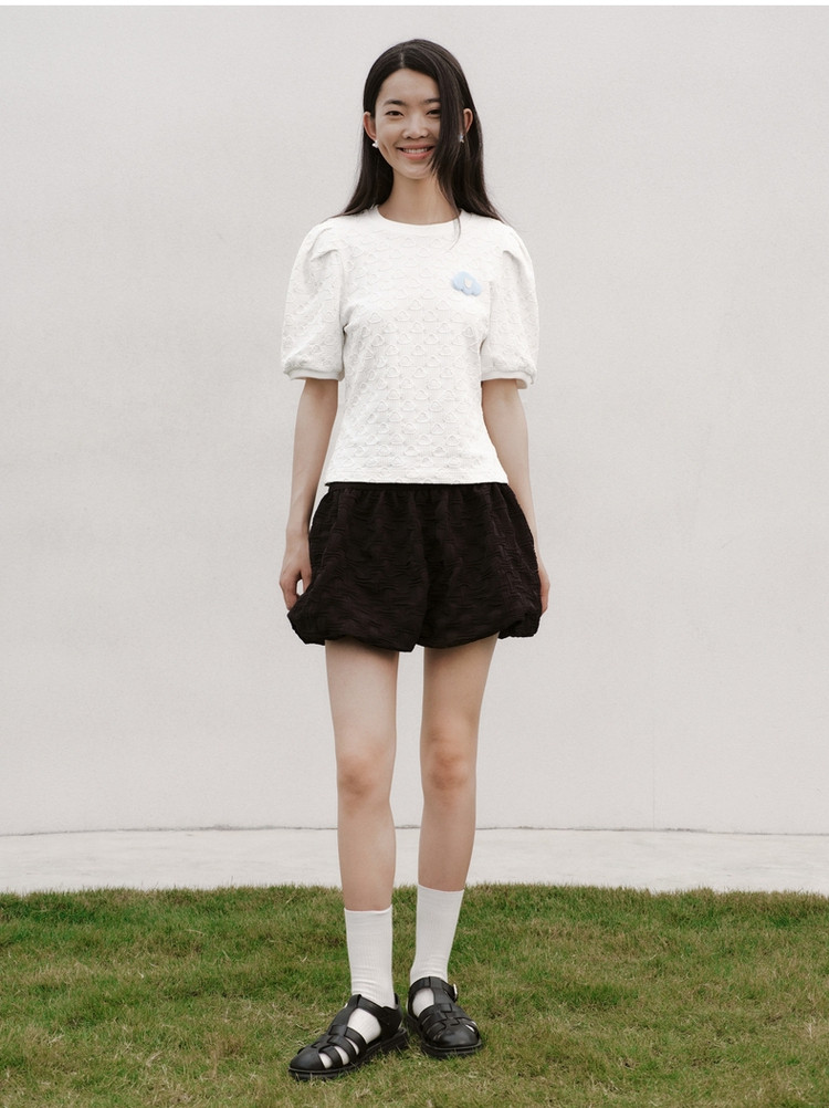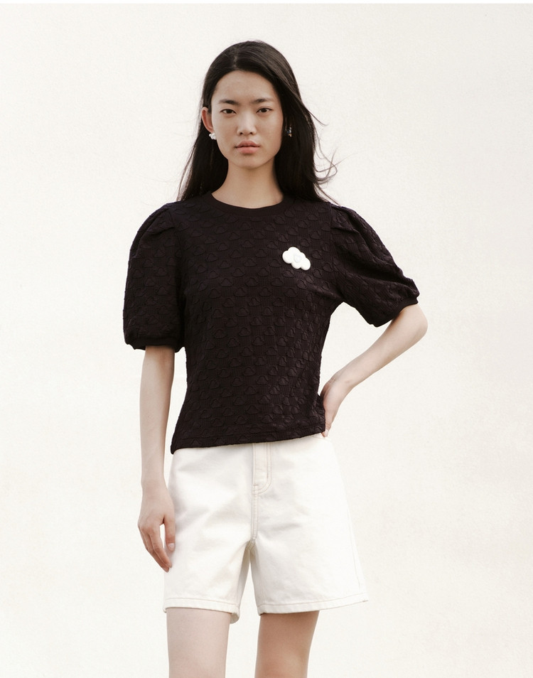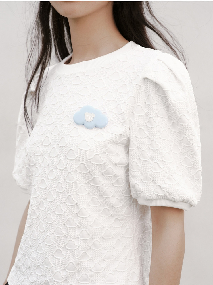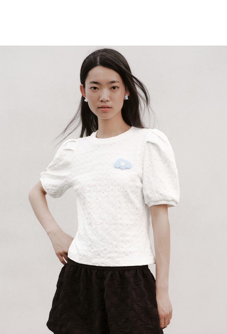【提花针织】T恤女短袖甜酷提花泡泡袖可爱针织上衣 978433