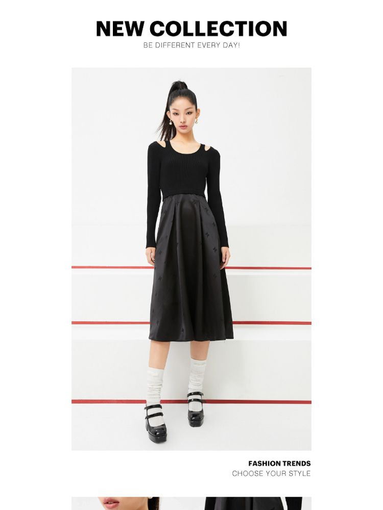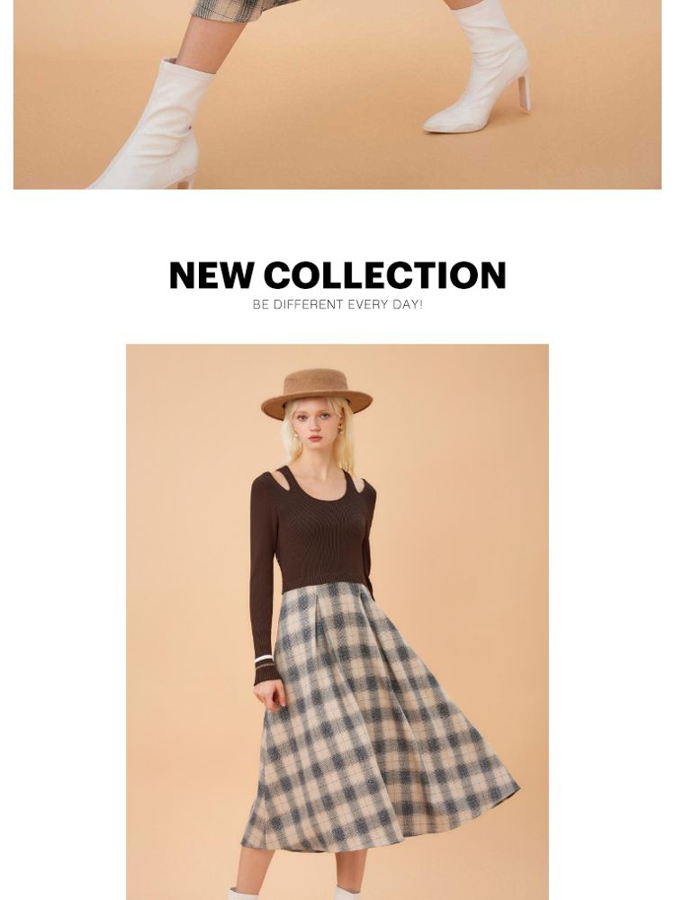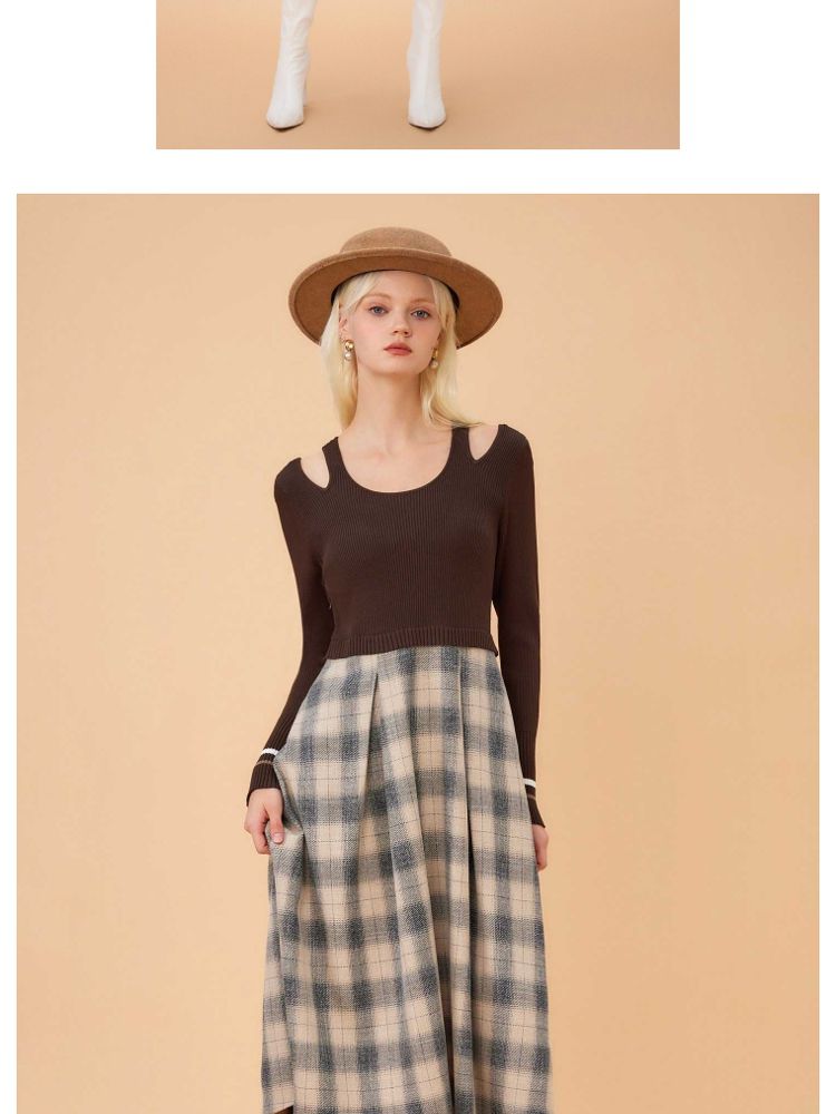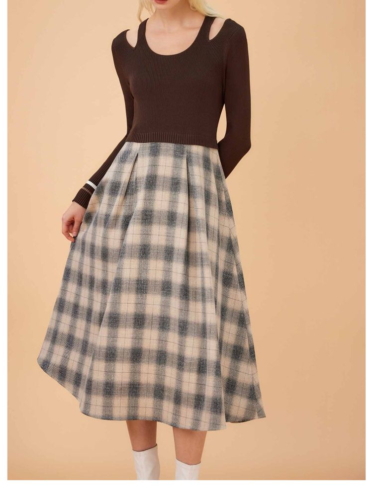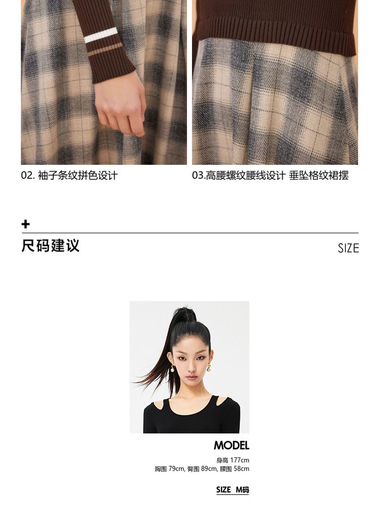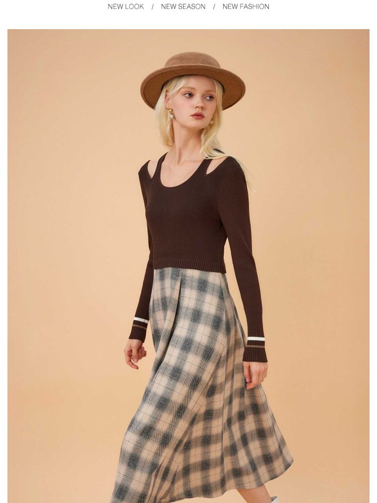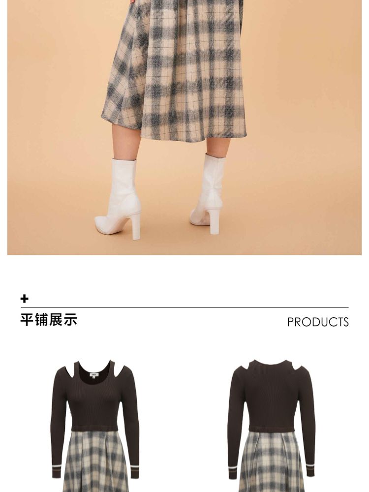 商品名称:【福利款】夏季气质显瘦格纹针织假两件连衣裙女 423898