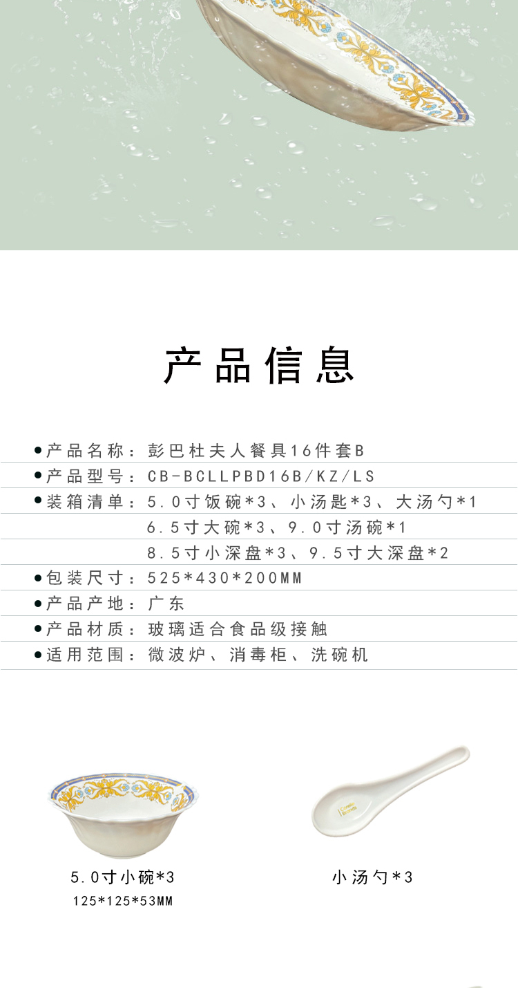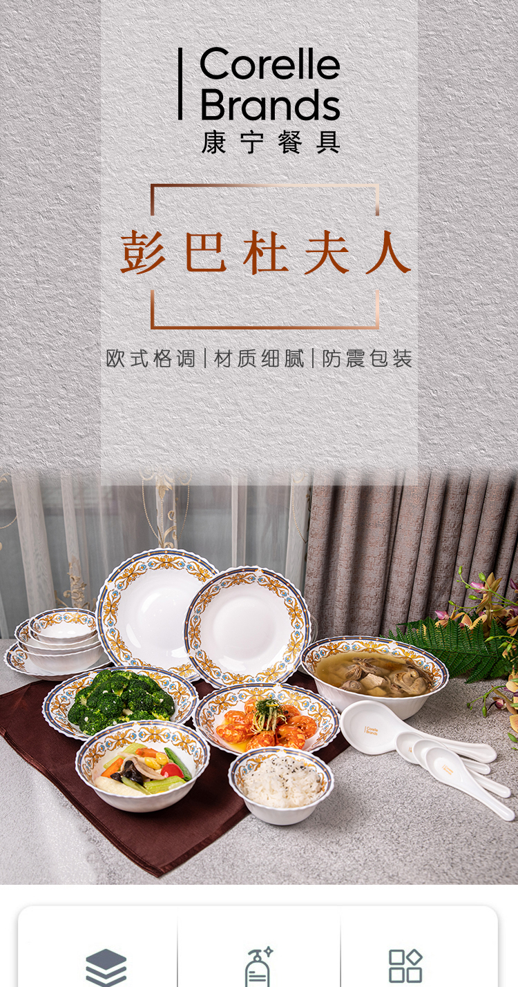 商品名称:康宁CB-BPBD16B/KZ/LS冰萃玲珑 彭巴杜夫人 餐具16件套B (5.0寸饭碗*3
