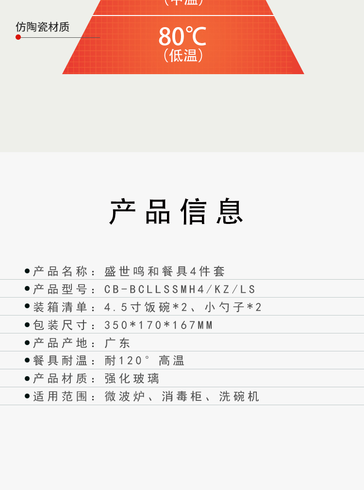 商品名称:康宁CB-BCLLSSMH4/KZ/LS冰萃玲珑 盛世鸣和 餐具 4件套(4.5寸饭碗*2 1