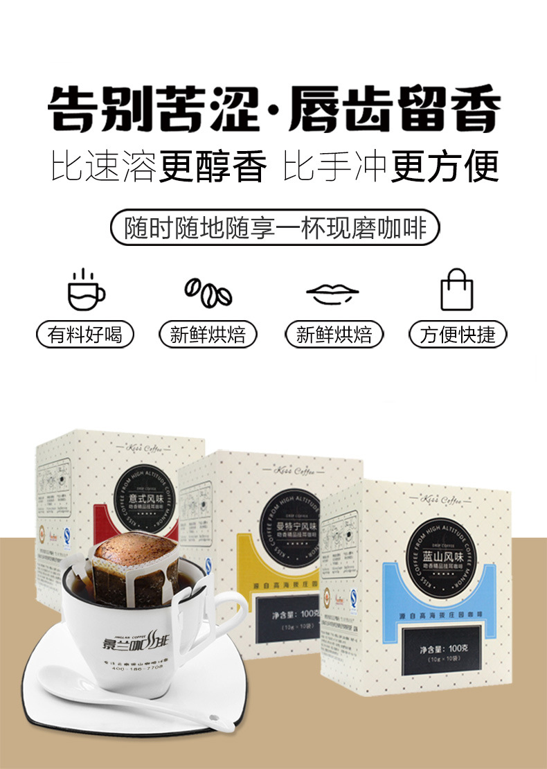 商品名称:景兰挂耳咖啡 100克10袋盒装