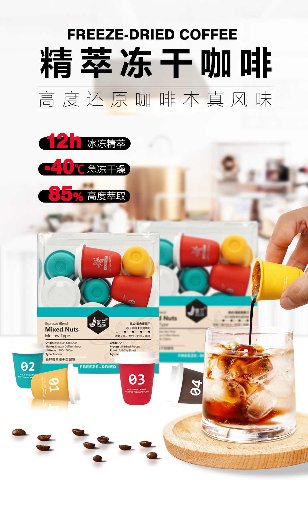 商品名称:景兰冻干意式咖啡 云南阿拉比卡豆24g*1盒(2g*12颗)