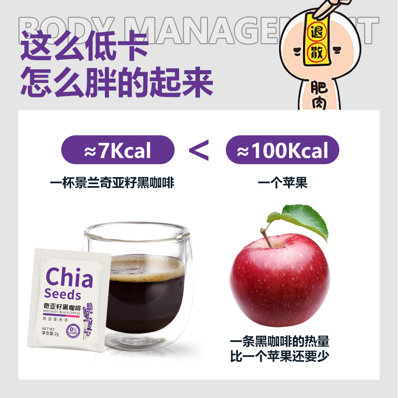 商品名称:景兰 奇亚籽纯黑咖啡20G*1盒无糖0脂减燃油健身速溶美式咖啡(试喝装)