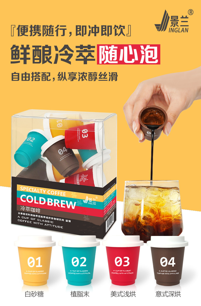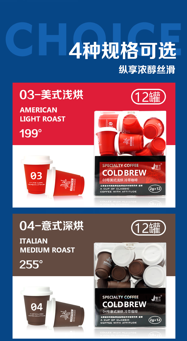 商品名称:景兰04号意式深烘/03号美式浅烘12罐24克冷萃咖啡PVC盒装