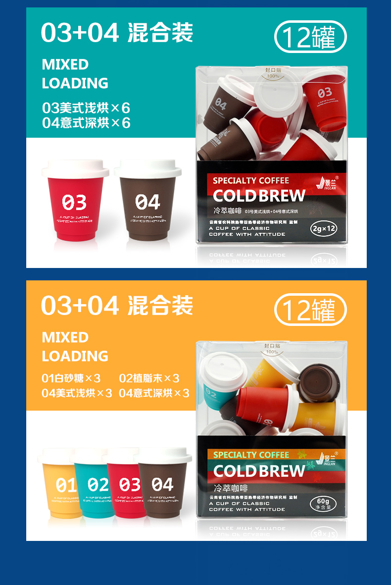 景兰04号意式深烘/03号美式浅烘12罐24克冷萃咖啡PVC盒装