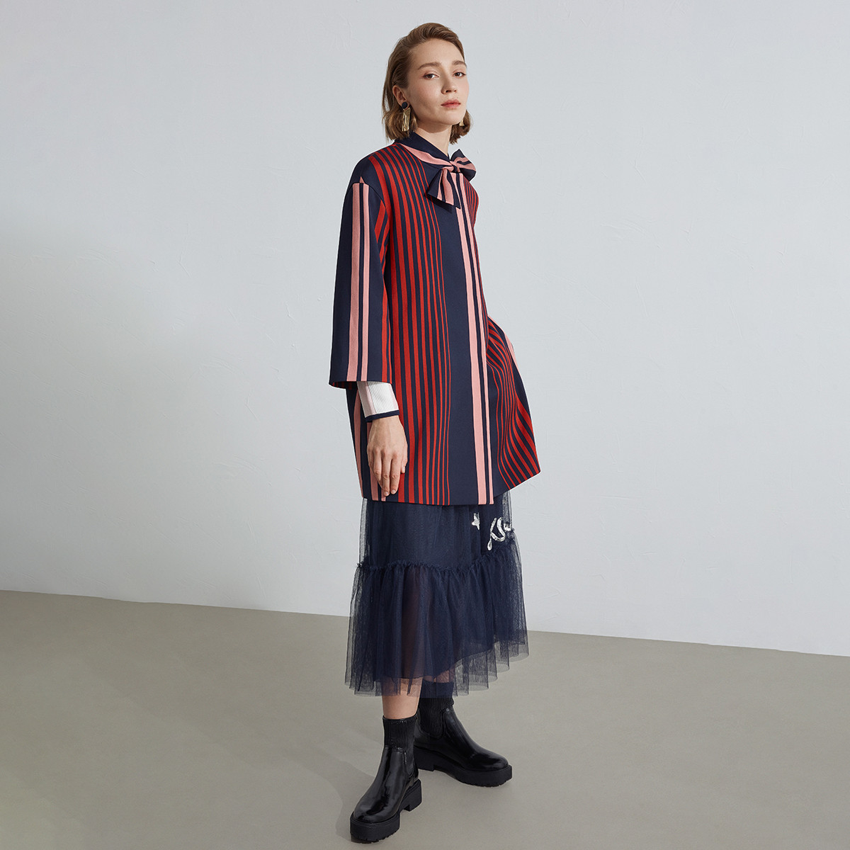 商品名称:宝姿女装时尚条纹撞色通勤休闲日常百搭外套 206346