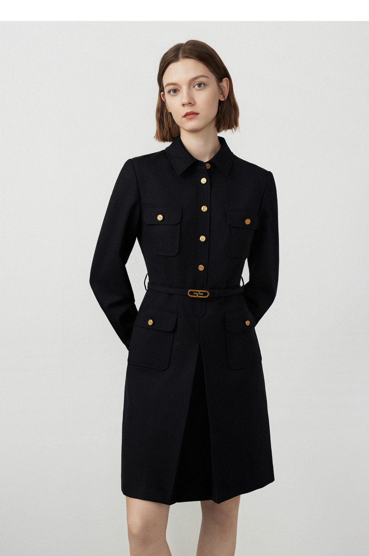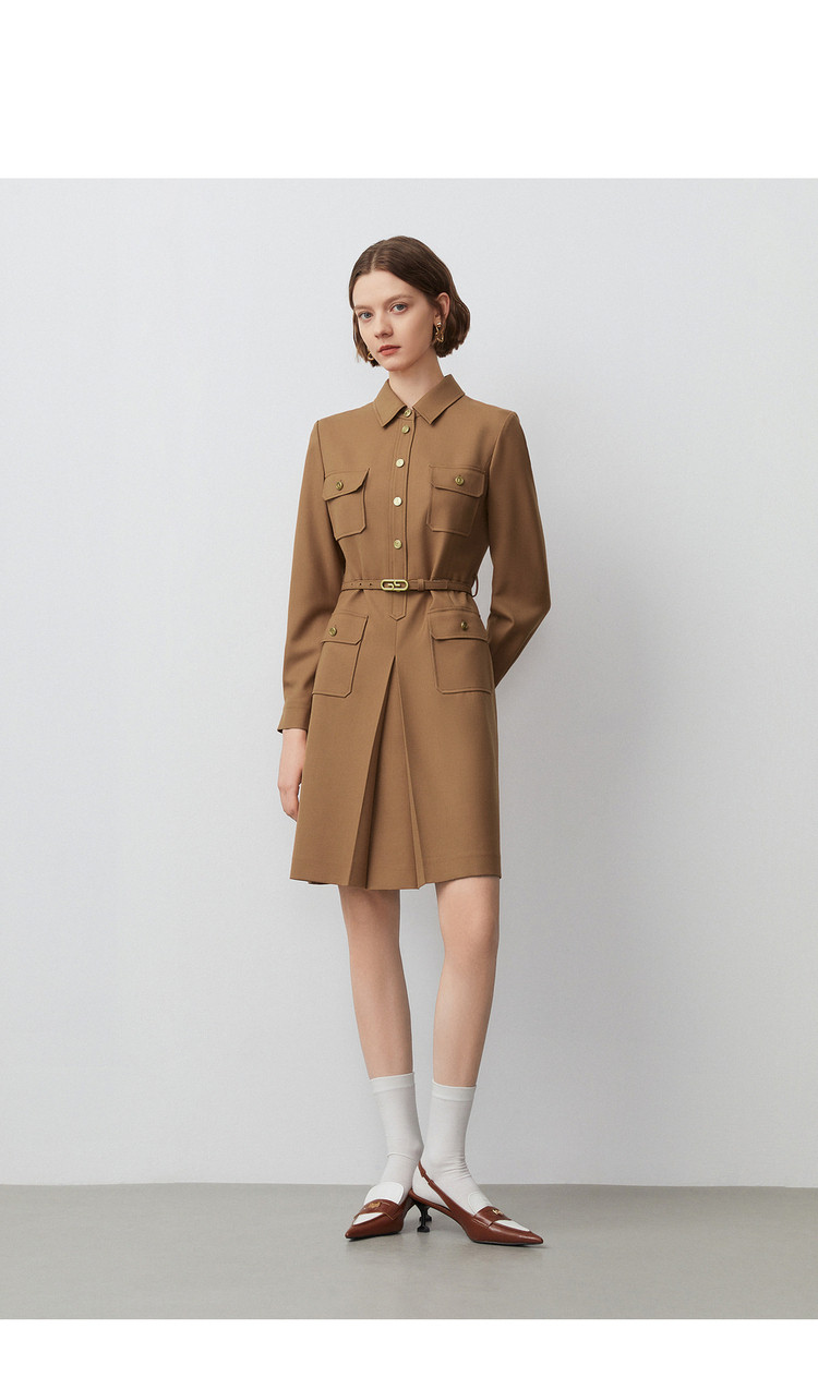 春秋款法式工装风复古气质连衣裙长袖显瘦显高衬衫裙 582105