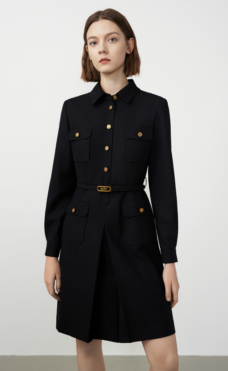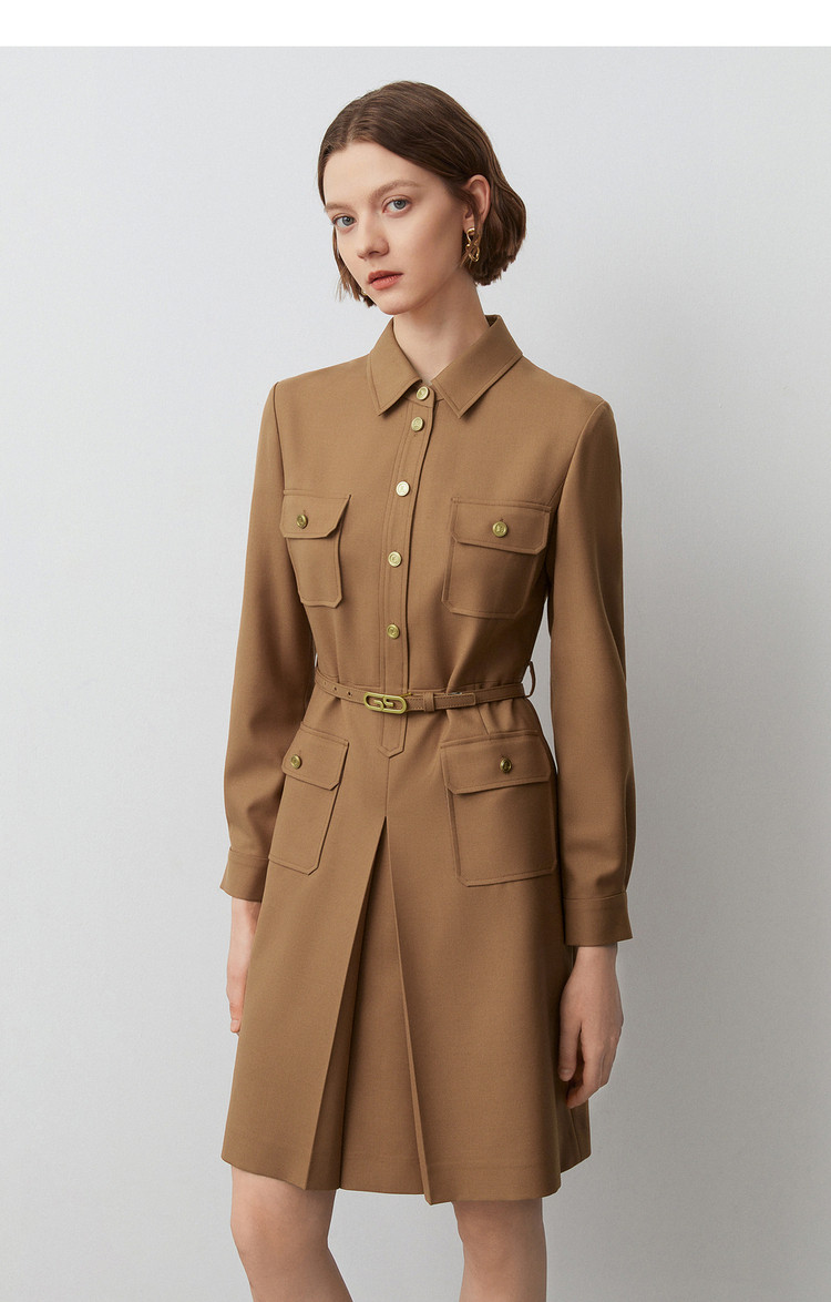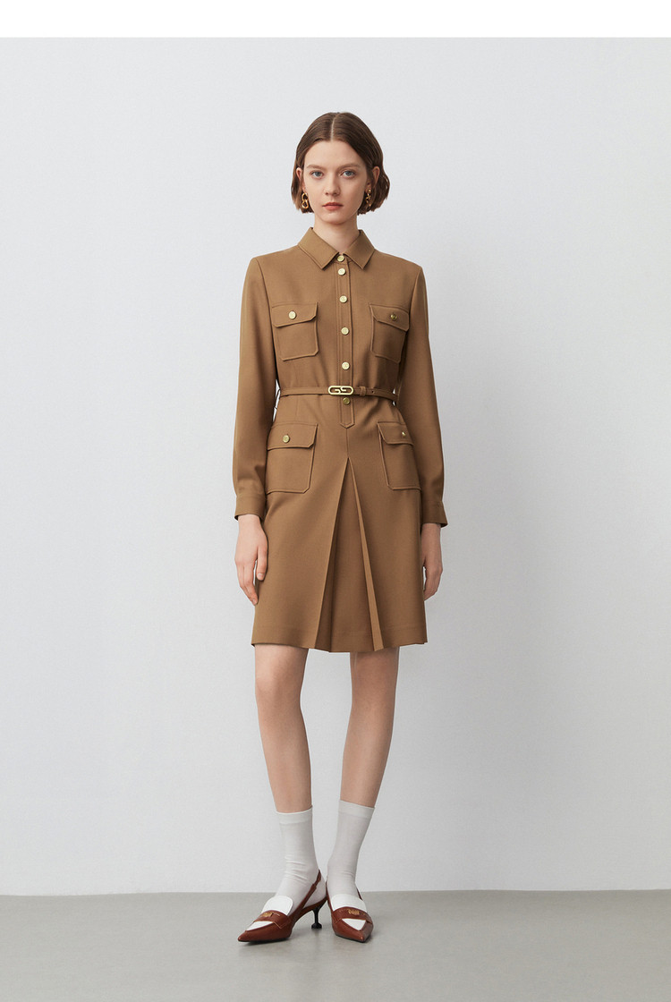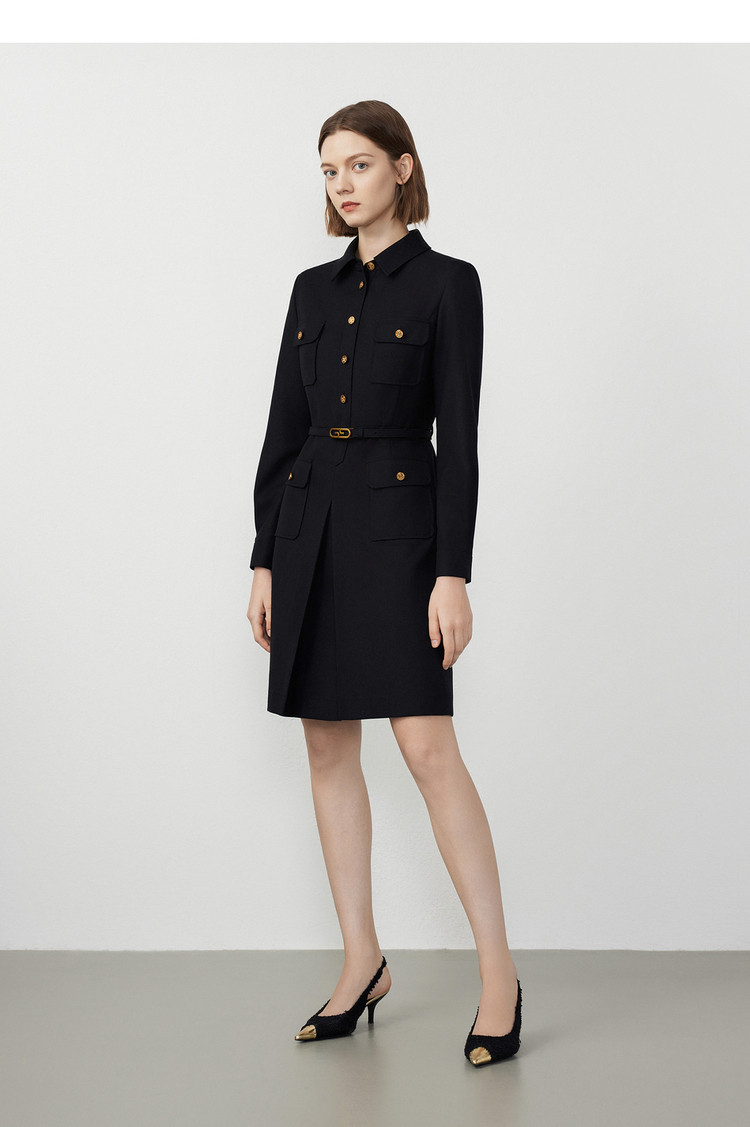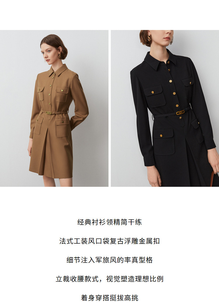 商品名称:春秋款法式工装风复古气质连衣裙长袖显瘦显高衬衫裙 582105