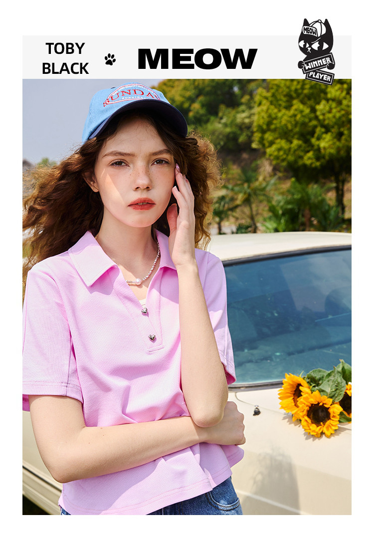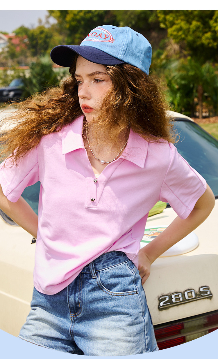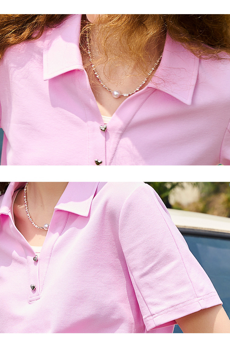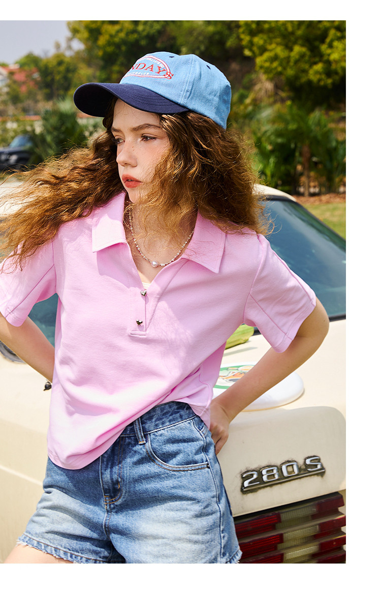 商品名称:夏季复古POLO领显瘦大码休闲百搭女式T恤 591261