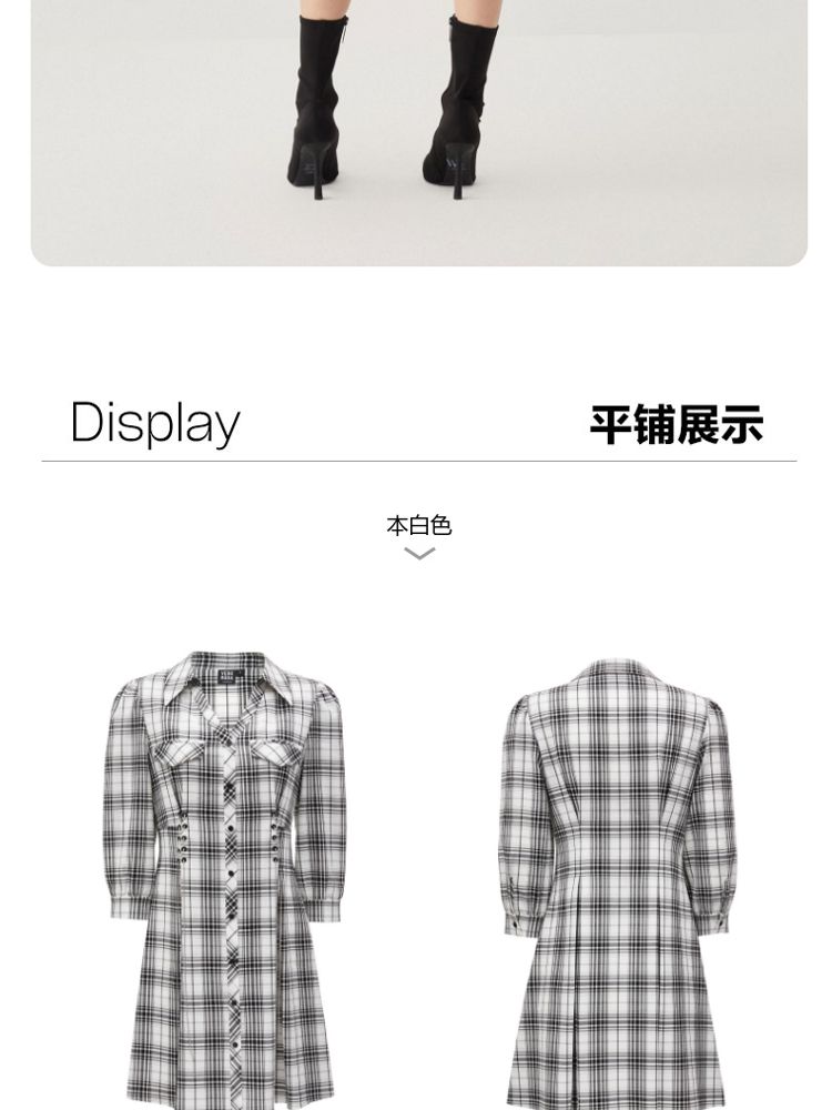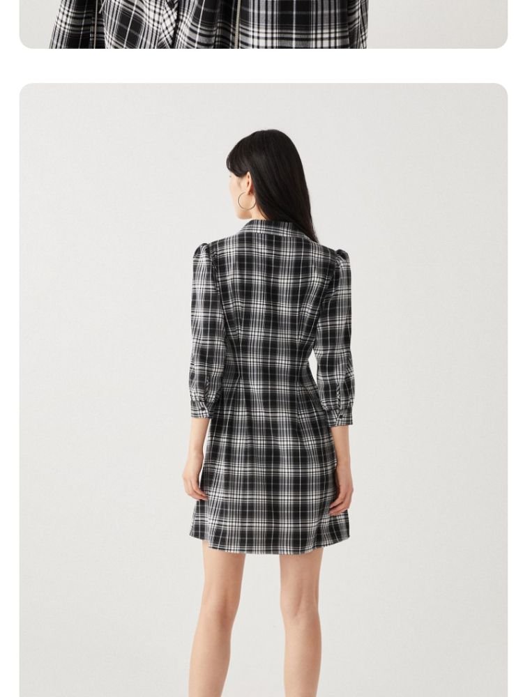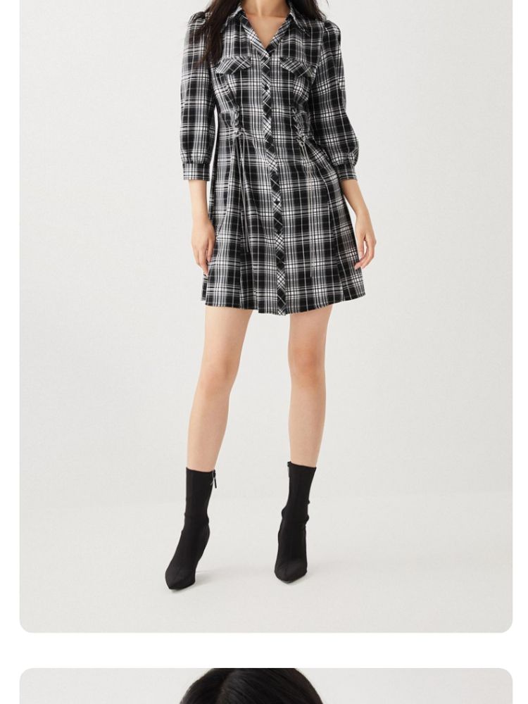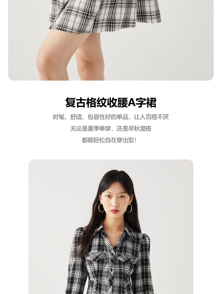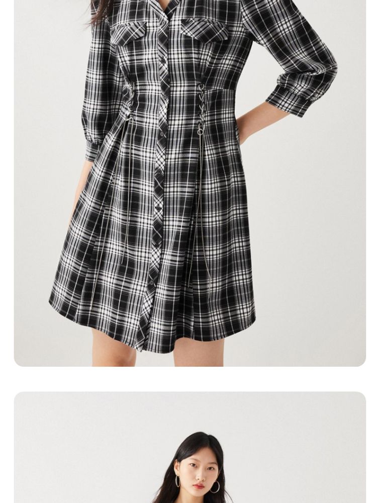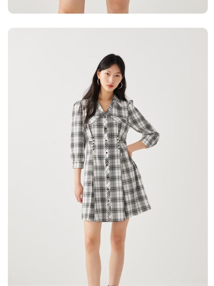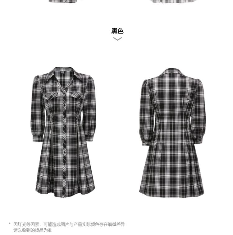 商品名称:【春秋专柜款】复古格纹七分袖收腰A字裙短裙连衣裙 494289