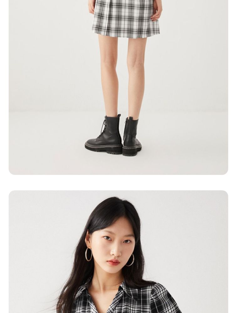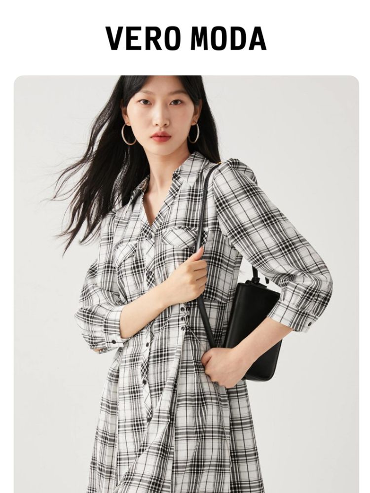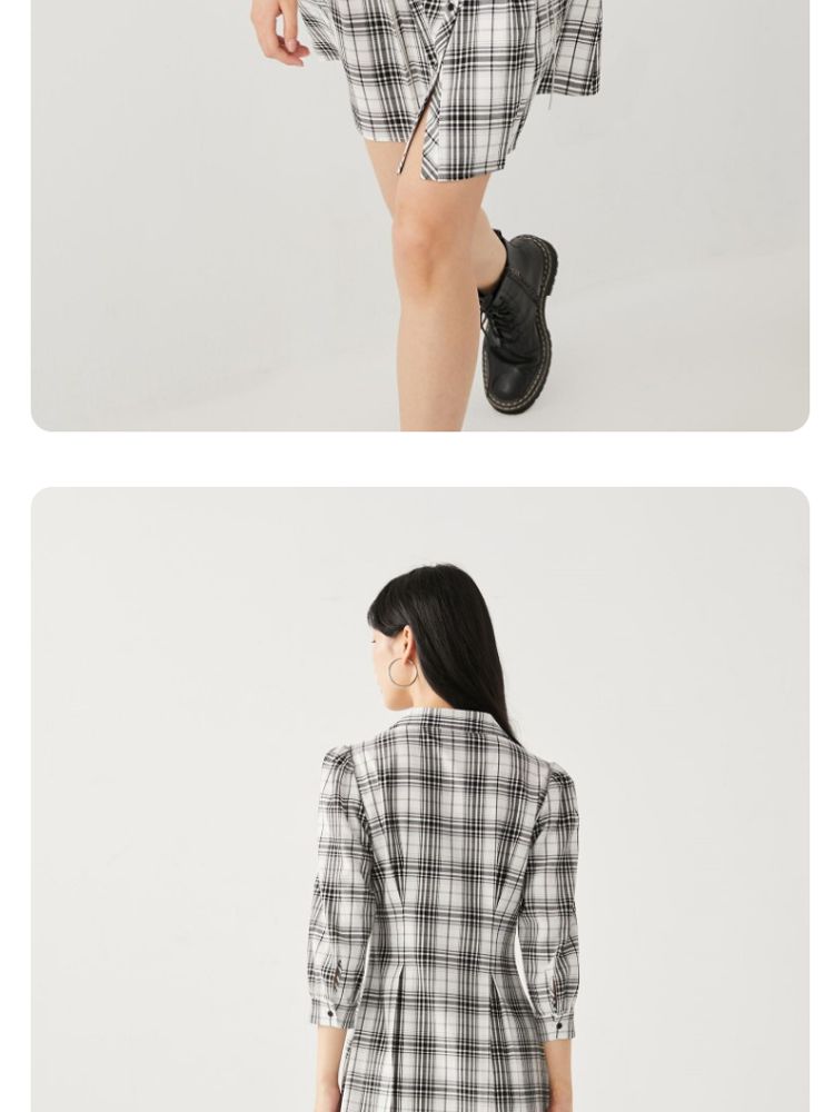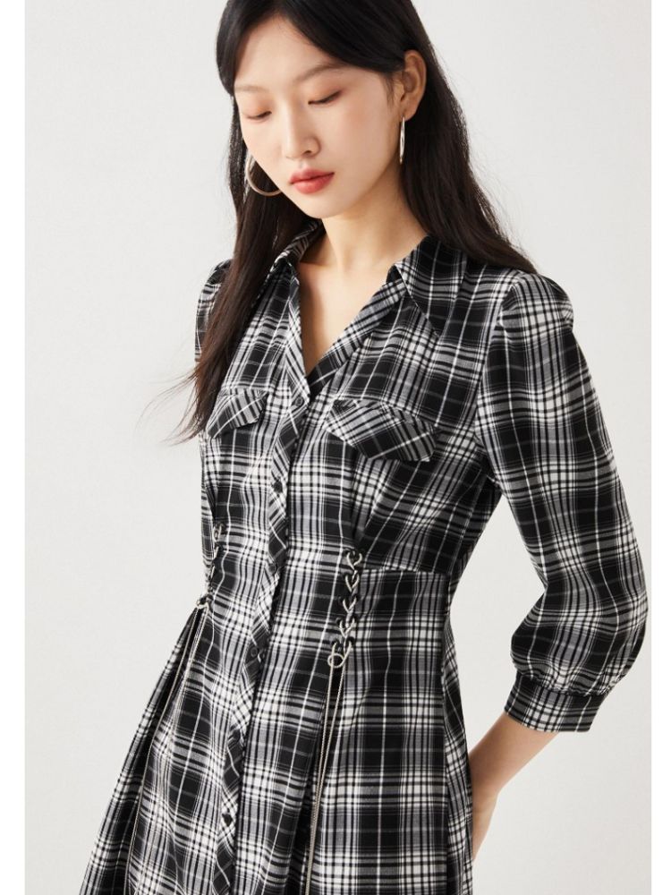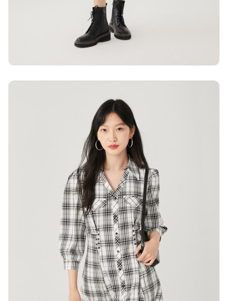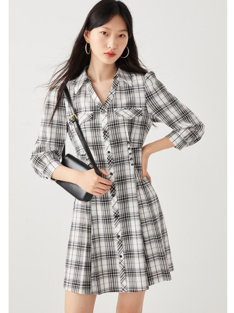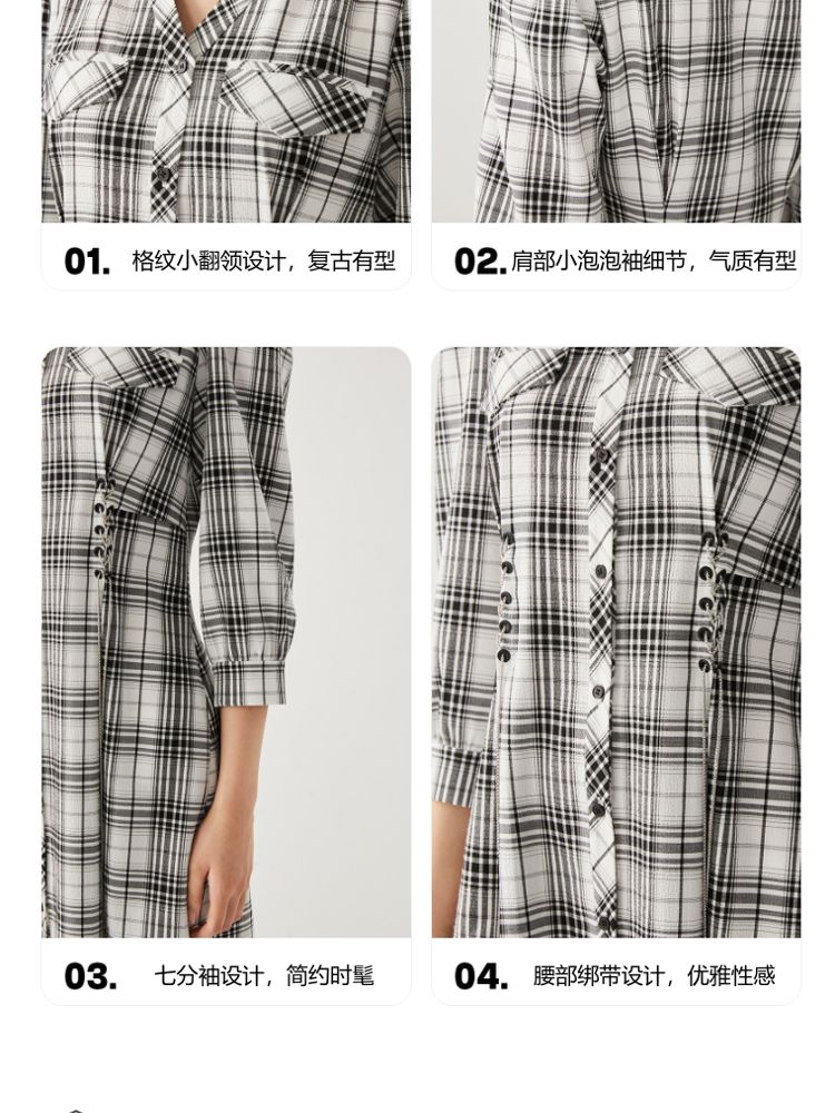 商品名称:【春秋专柜款】复古格纹七分袖收腰A字裙短裙连衣裙 494289
